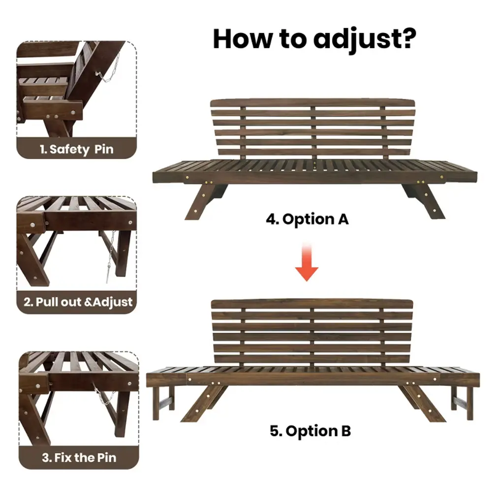 Enhance your outdoor living space with the Brown Finish Patio Chaise Lounges, a versatile wooden daybed perfect for small areas. Crafted for durability, this daybed features an expandable design with adjustable sides, transforming into a chaise lounge or sectional sofa. Measuring 51"L x 21.3"W x 31.9"H unextended and 78.7"L when extended, it offers comfort with 2.8-inch thick beige cushions. Ideal for patios, decks, or balconies, this elegant piece combines style and functionality for your outdoor enjoyment.