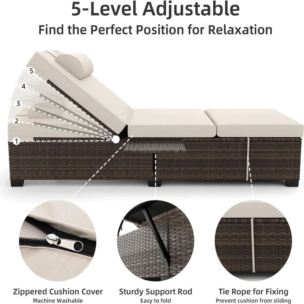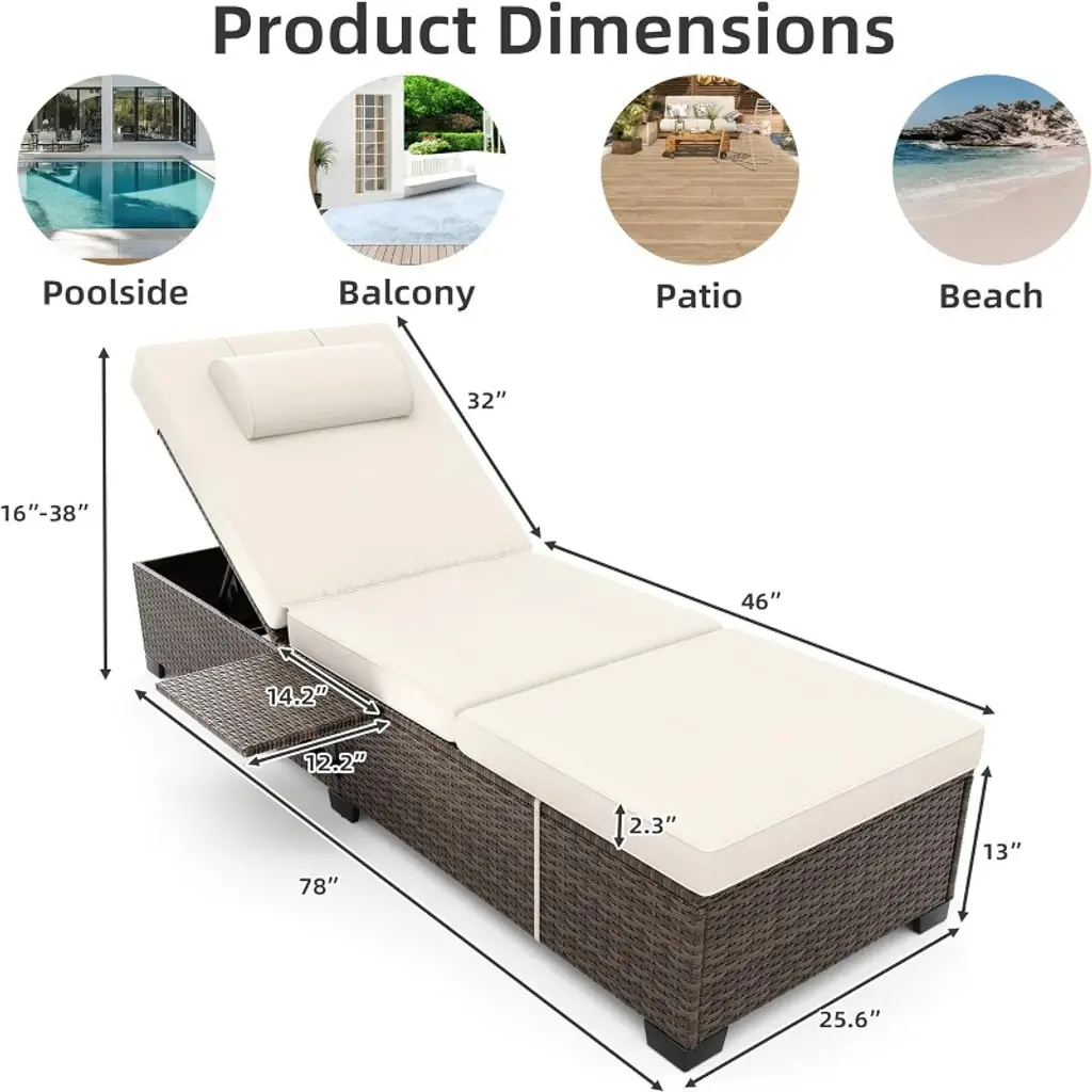 This Pair Of Pe-Wicker Chaise Lounges Features Five-Position Adjustable Backs, A Fold-Out Side Table, Thick Strapped Cushions With Head Pillows, And A Rust-Resistant Steel Frame (380-Lb Capacity), Delivering All-Weather, Eco-Friendly Comfort For Indoor Or Outdoor Relaxation.