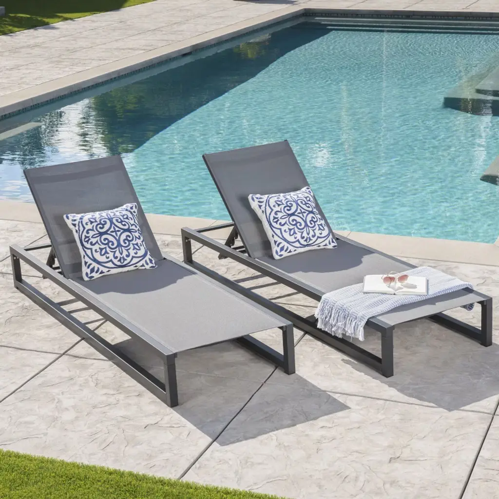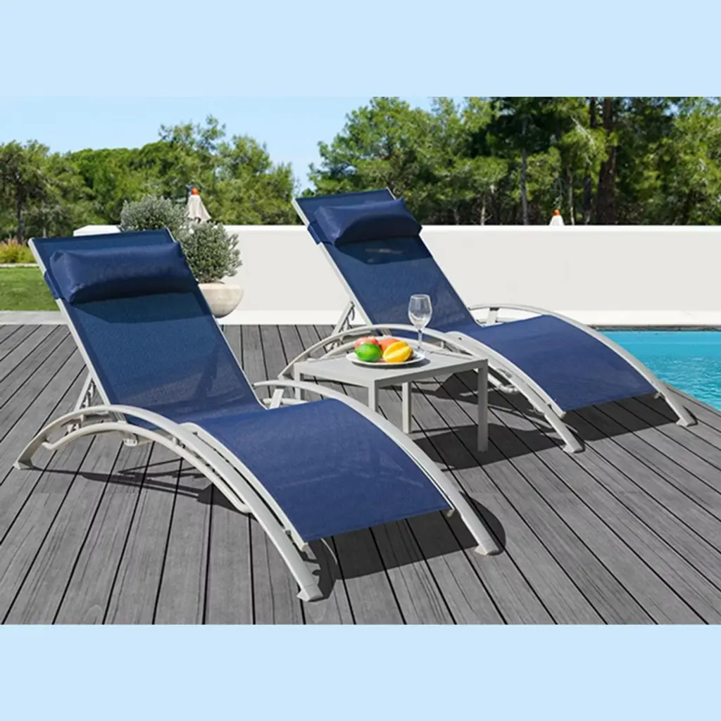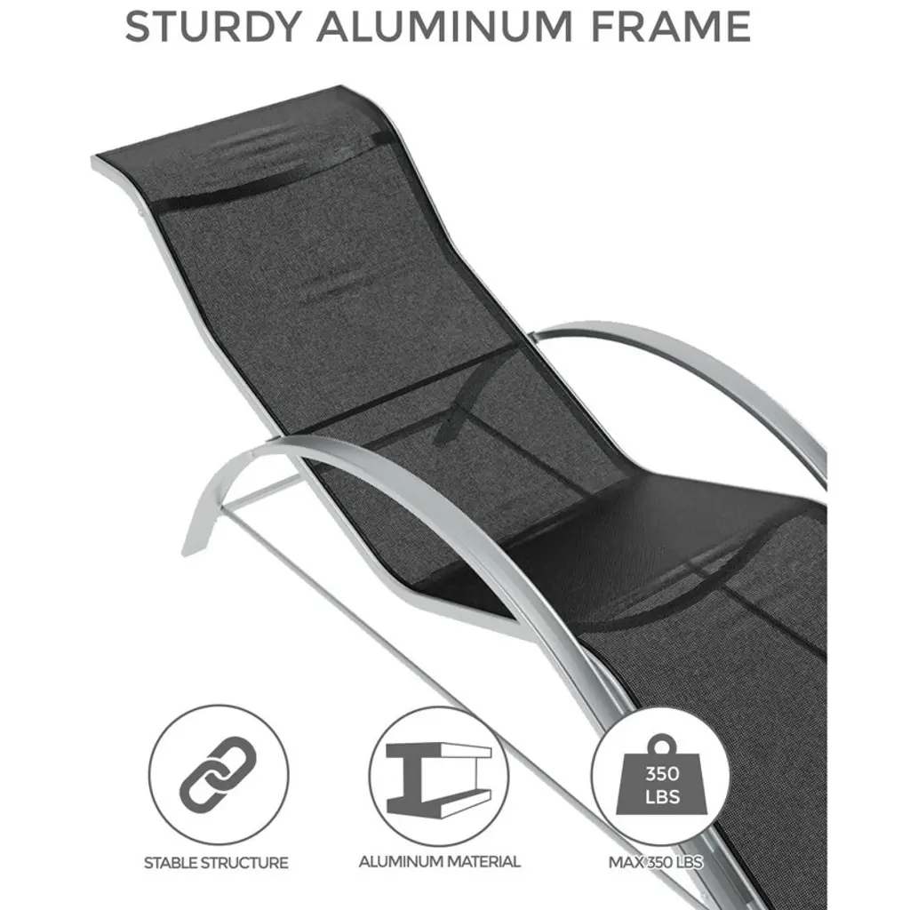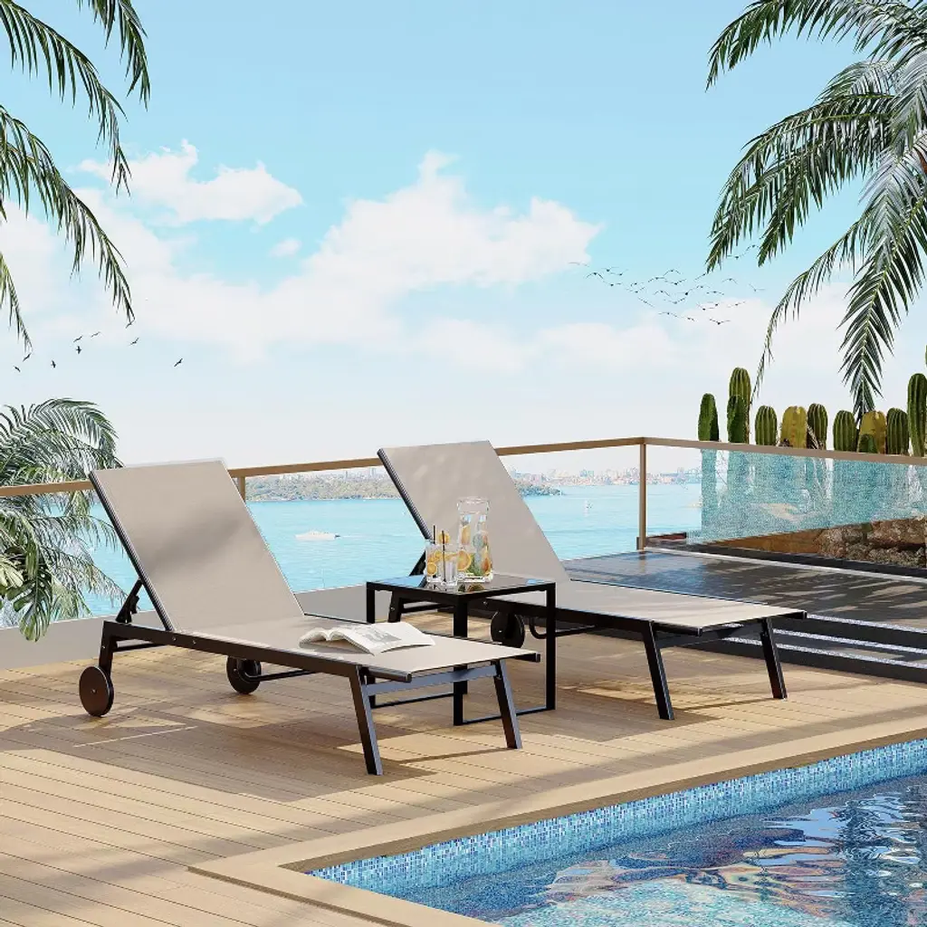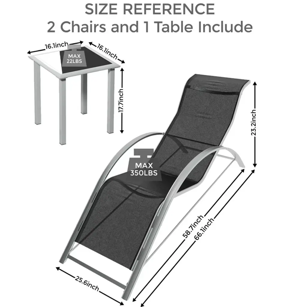 Gustowave 3-piece Outdoor Chaise Lounge Set, Outdoor Reclining Sun Lounger For Pool, Beach Or Patio – All-weather Metal Frame, Black