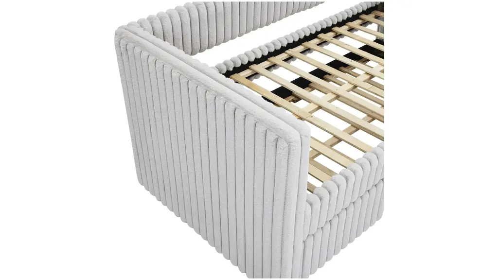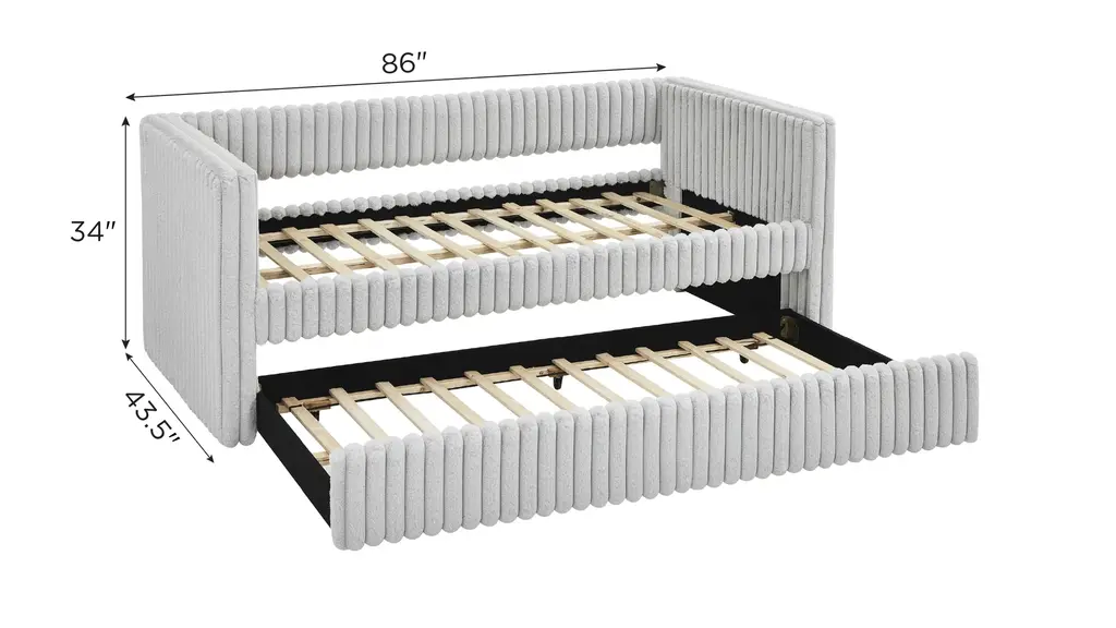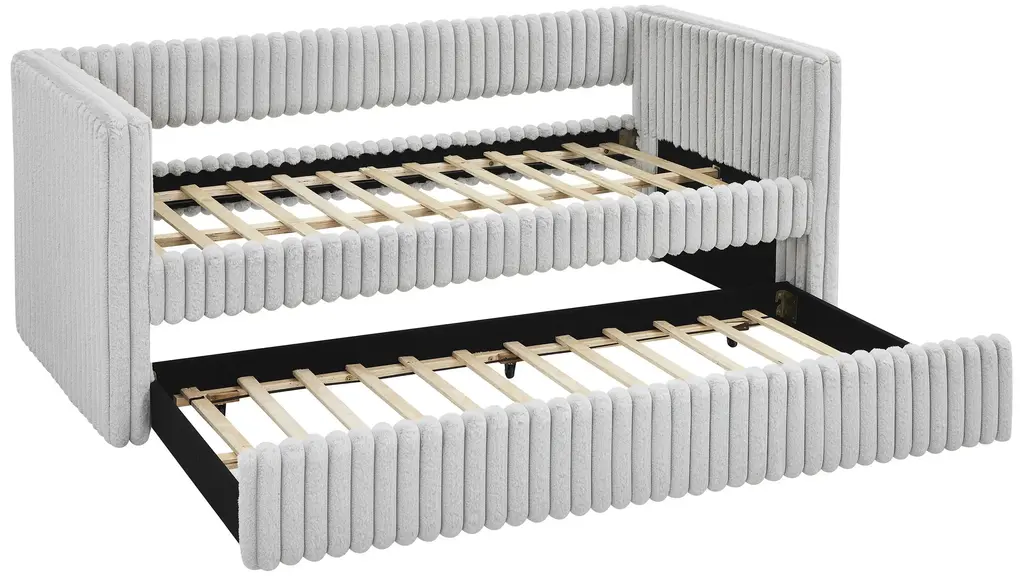 This sleek and modern Hailey Daybed embodies luxurious comfort and refined design. Featuring plush, channel-tufted upholstery in a calming neutral tone, it effortlessly complements any contemporary decor. The textured tufting adds depth and elegance, making it as inviting as it is stylish. Perfect for relaxed lounging or accommodating guests, this versatile piece serves as both a functional and sophisticated focal point for your space.