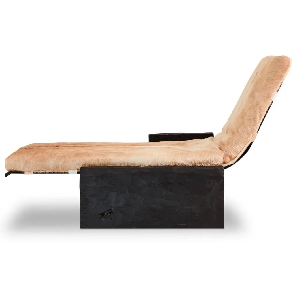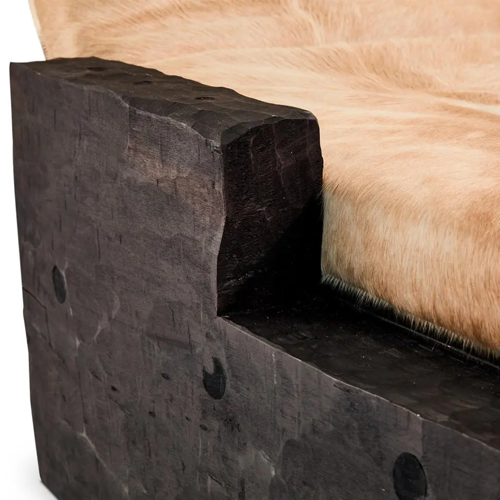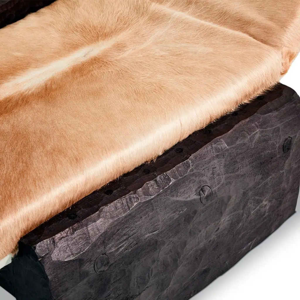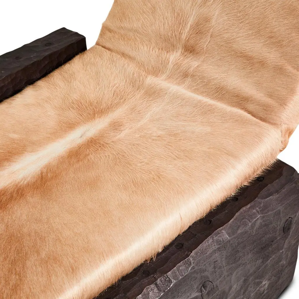 Hand Carved Wood, Steel & Hair On Hide Blessing Modern, Brutalist, Daybed