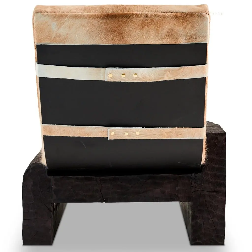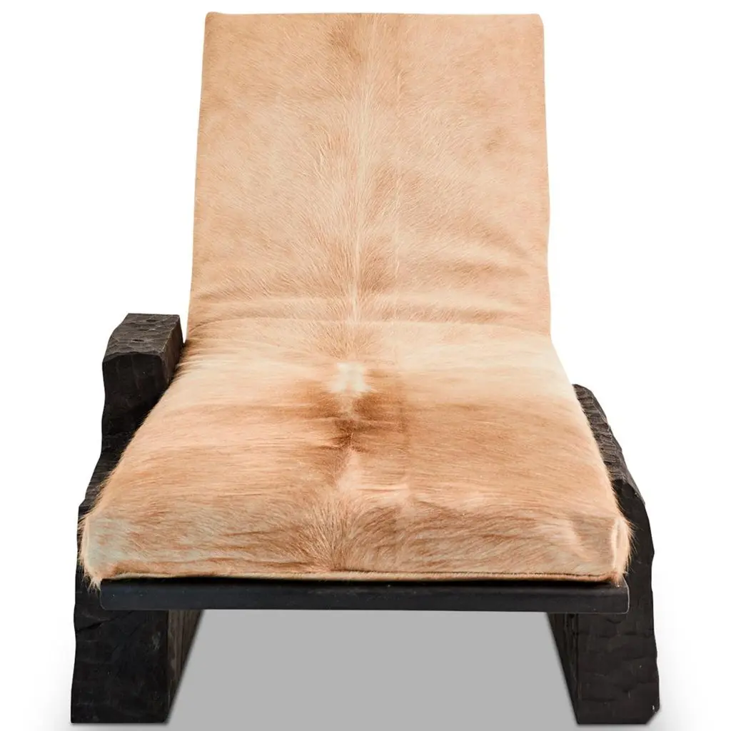 This daybed is part of our Blessing collection.This modern, Brutalist inspired daybed is set on a hand carved hardwood base which is burnished and polished black. The base supports a steel section which has a hair on hide, removable cushion. The hide is a tan Nguni cow skin, the Nguni cow is a prized cow in the Royal families of KZN where the daybed is made. The Blessing daybed is good for use indoors and would complement any style of interior from Modern, Mid Century modern, Minimal to Brutalist. It also fits very well into interiors that favor natural material, where a Wabi Sabi aesthetic is desired. The hair on hide version cannot be used outdoors, we have many outdoor fabric options which would make the daybed usable outdoors and on a patio. If you select outdoor there is an option to include feet so that the daybed is slightly lifted off the ground to avoid it standing in water. Please discuss this option with us.Timber disclaimer:- "Different textures, grains, coloration and densities are natural characteristics of timbers. We find these variances an inherent and valuable part of the natural beauty of wood, no two pieces are the same making each EGG Design a unique, characterful piece and each product will be different from the next. Timber movement will also occur as this is a natural product."