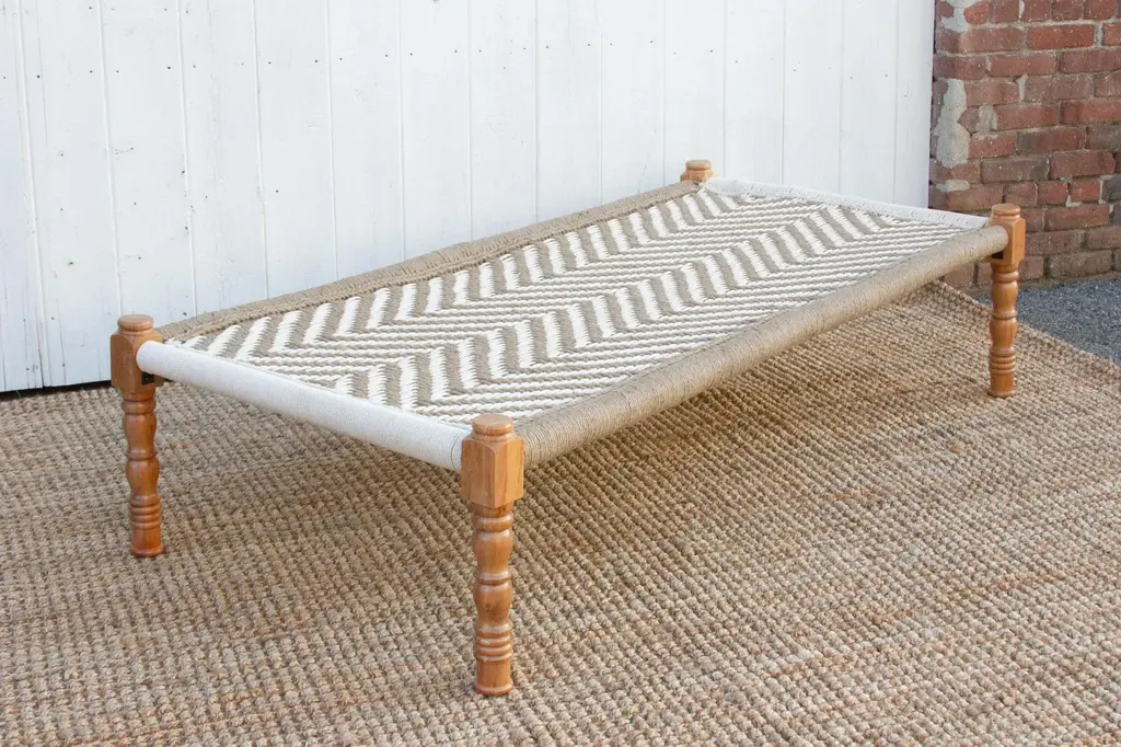 This captivating coffee table, inspired by the traditional Indian daybed, effortlessly blends global intrigue with modern design. Handcrafted with a beautifully woven top, it exudes a clean, organic aesthetic that seamlessly complements both boho and farmhouse décor. Imagine the exquisite craftsmanship of the woven top, showcasing the rich heritage and adding a unique textural element to your space. This modern interpretation transcends tradition, offering a sleek and contemporary silhouette that complements modern interiors. Unbound versatility allows this piece to shine in your living room as a stylish coffee table or grace your entryway as a conversation starter, adding a touch of understated elegance to any setting. Please note: While the design draws inspiration from the daybed concept, its delicate construction is not intended for use as a seating surface. **Please bear in mind that colors of products shown may vary slightly from their original color due to monitor display settings or photography studio lighting.