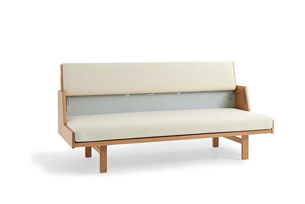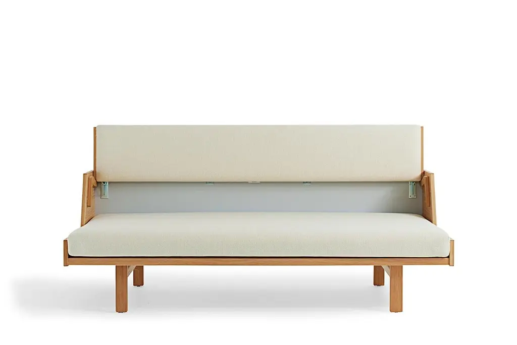 Designed by Hans Wegner in 1954, the GE 258 day bed is a versatile piece of furniture. The upholstered backrest lifts to provide a roomy bed. Crafted in solid wood, this bench is hand built at Getama’s factory in Gedsted, Denmark by skilled cabinetmakers using traditional Scandinavian techniques.Available in fabric or leather. Inquire for available upholstery options.Lead time: 6 - 8 weeks