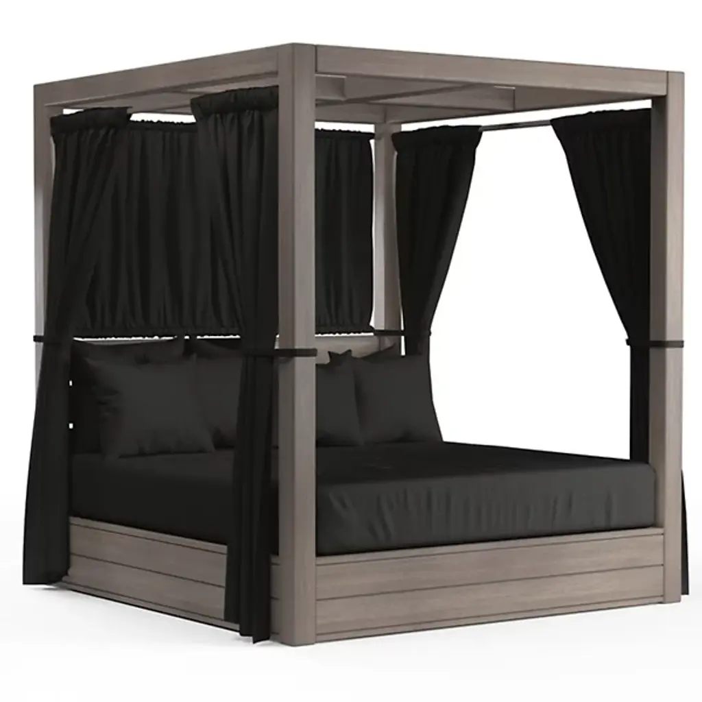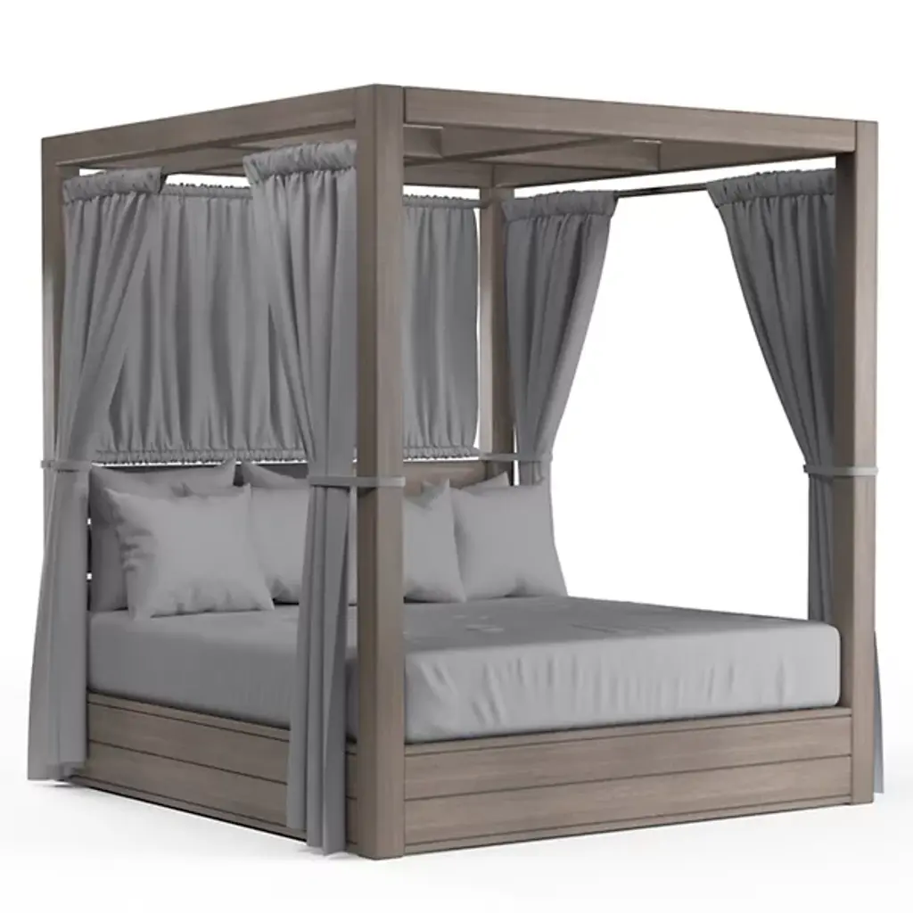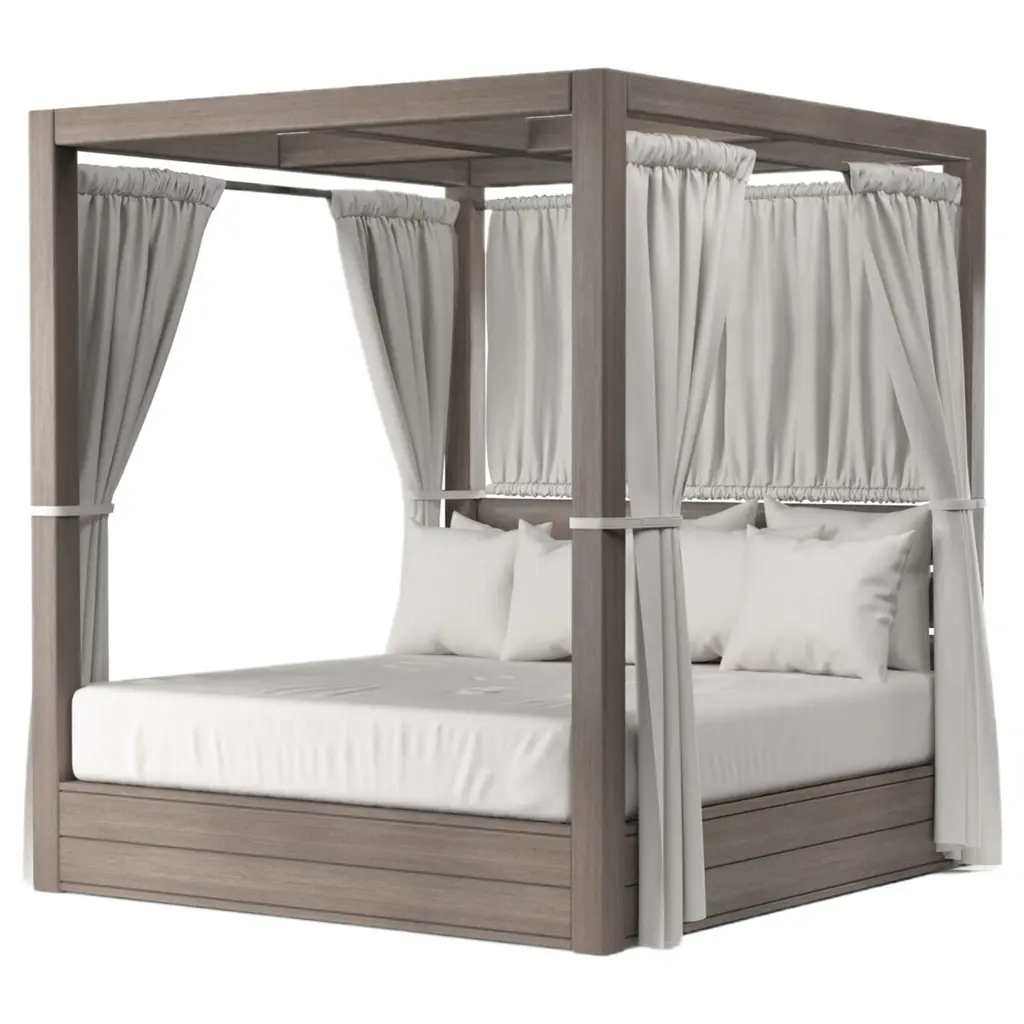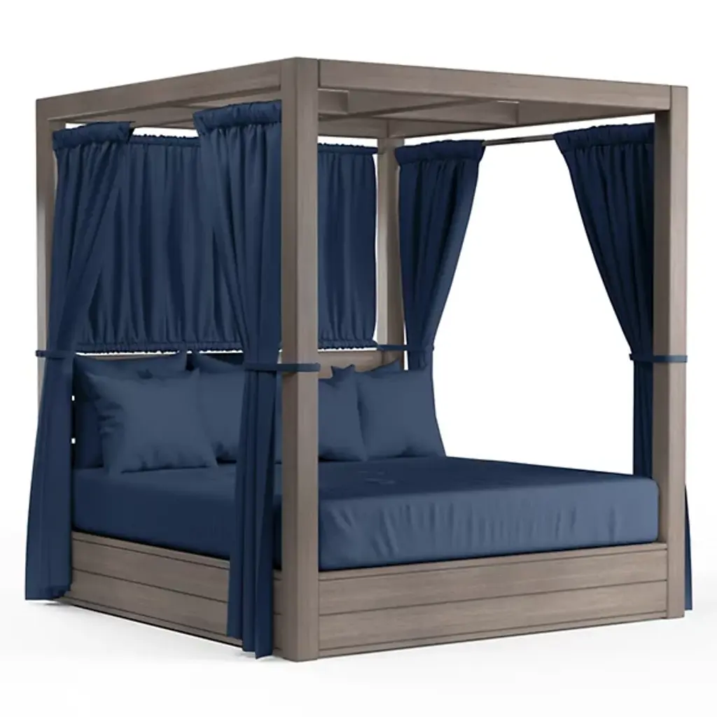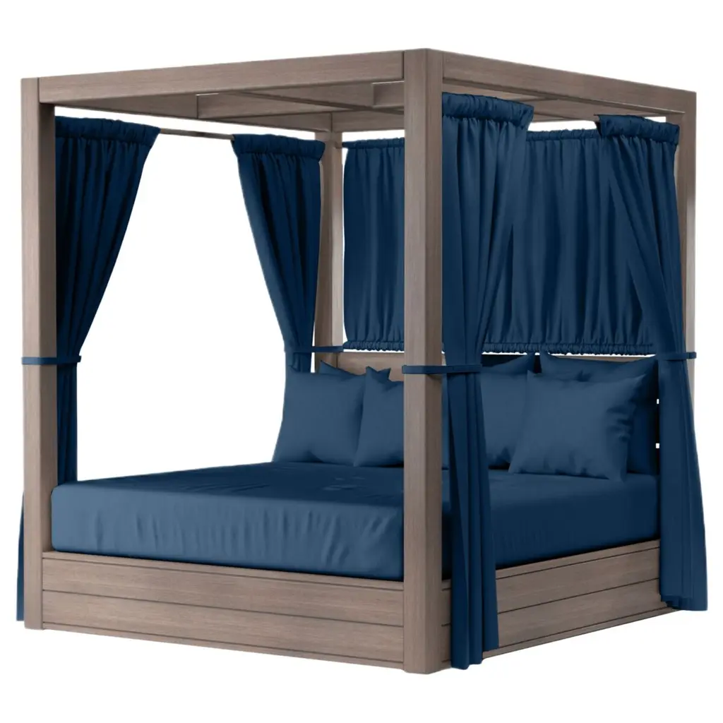 The Harlyn Resort King Daybed offers a luxurious outdoor lounging experience with its fully welded, scratch-resistant powder-coated aluminum frame and premium all-weather mattress cushion. It includes three 20" pillows, four 18" pillows, four side panel curtains, and one privacy panel, ensuring both comfort and privacy. With commercial quality construction, this daybed is made to order and available in approximately 4 weeks.