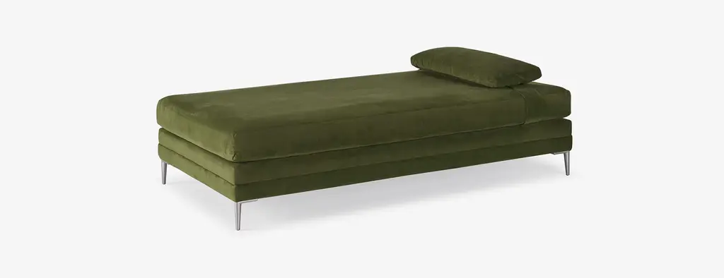 Mid-century modern minimalism mixes effortlessly with decadent details such as the detachable cushion for a daybed that’s right on trend. With minimal amount of fuss but maximum amount of Mid-century flair, our Hayden daybed is ready for you to select your finishing touches. Choose from our full array of fabric texture and colors to make this piece your own.