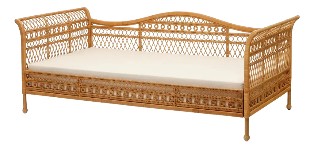 Airy and organic with a beachy, boho vibe, our exclusive rattan daybed is crafted with breezy beauty. With a hand-wrapped rattan and pinewood frame in a honey finish, this daybed creates a sweet spot to lounge when you add a twin-size mattress. Accent your daybed with an array of our decorative pillows when naptime is over and turn the bed into a deep-seated sofa with style to spare.