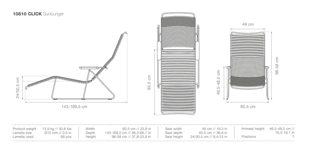 The CLICK Sunlounger Chaise Lounge is the perfect addition to your outdoor living space. Constructed of plastic lamellas, it is airy and comfortable.
