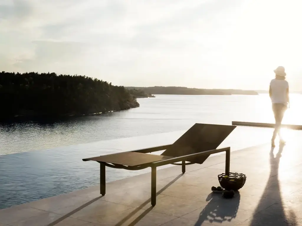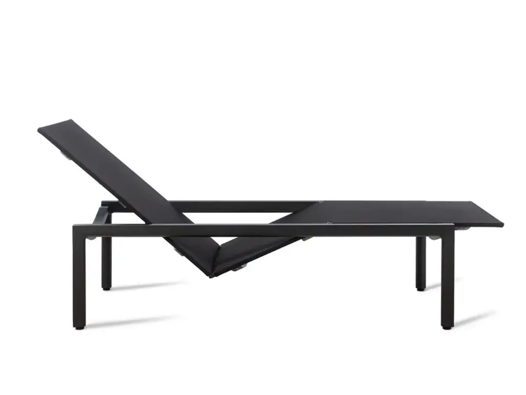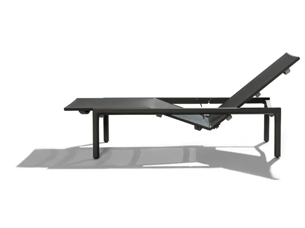 Illum is a lounger with a reclining backrest and seat. The frame is made of powder-coated aluminum. The Batyline seat dries quickly, maintains tension, and is resistant to UV rays, stains, and mold.The Illum collection refers to the classical Scandinavian furniture archetypes, translated with updated materials for outdoors. Aluminium is used like sculpted wood throughout the collection, with smooth transitions from crisp to soft lines. Functionality is paramount for Illum, without compromising on comfort and class however.