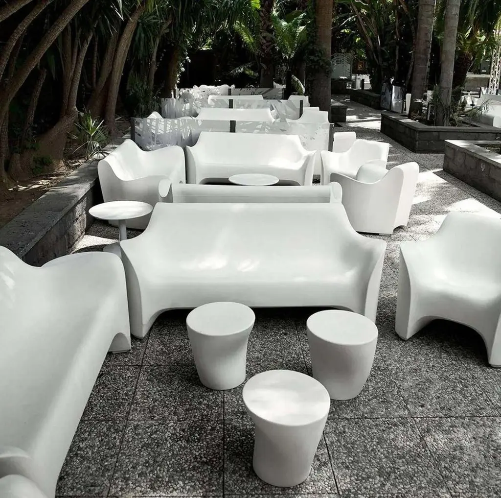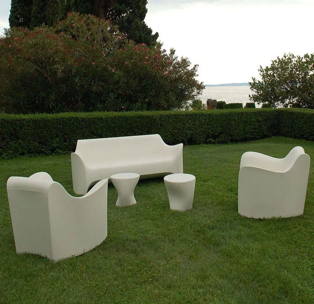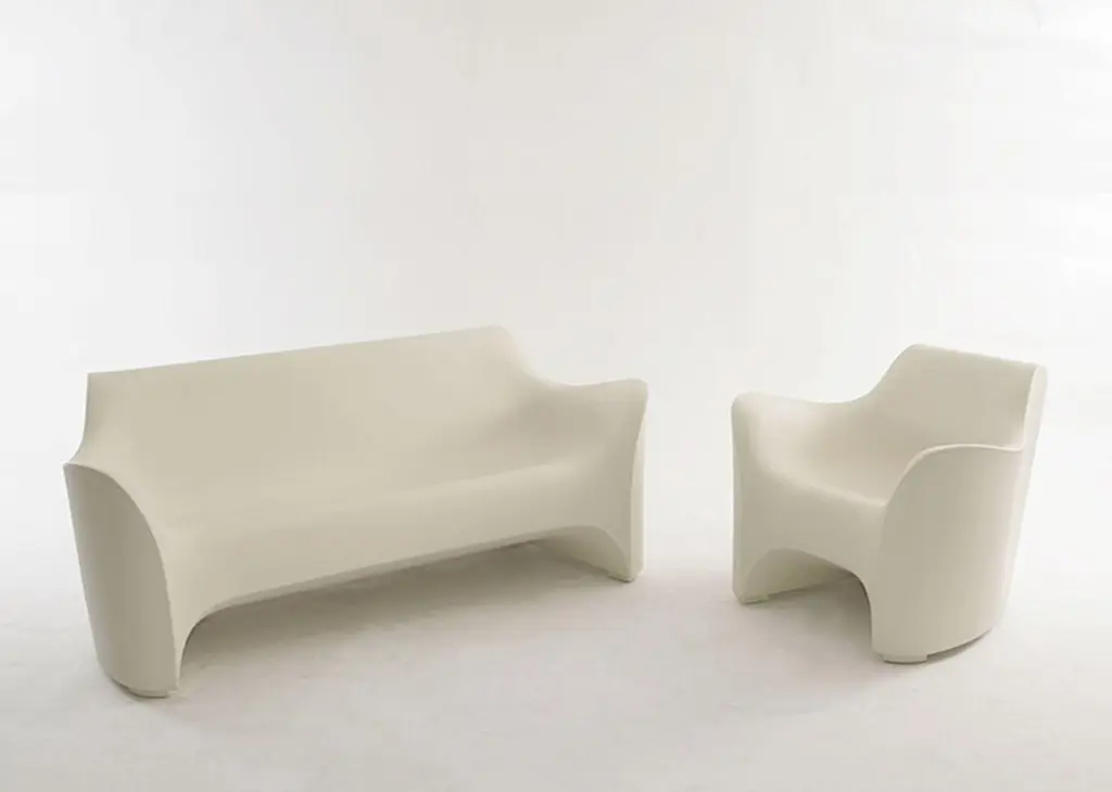 The Tokyo-Pop collection marks, in 2002, the debut on the international scene by Tokujin Yoshioka, now considered one of the masters of contemporary design. The sofa, the armchair and especially the day-bed and the stool, forget the banality of rotational molding to become sculptures. Unforgettable and unusual shapes.The Tokyo-Pop collection marks, in 2002, the debut on the international scene by Tokujin Yoshioka, now considered one of the masters of contemporary design.The Driade Tokyo Pop Daybed is made for relaxation. With a smooth, organic form reminiscent of the indoor La Chaise by the Eames's, this daybed is just as inviting for luxurious outdoor lounging. This sculptural design is made out of a single piece of rotation molded polyethylene plastic, making it exceedingly durable for long term outdoor use.