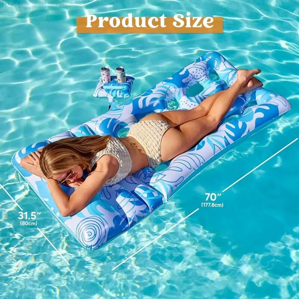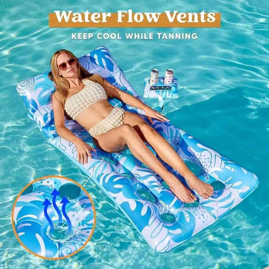Inflatable Pool Float for Adults- Tropical Leaves lounger with adjustable backrest, cup holders, and a floating chair design This tanning pool is the perfect choice for anyone looking to relax and enjoy the water. Whether you're lounging in a inflatable tanning pool or floating on a tanning chair, this inflatable lounger provides maximum comfort. The durable design ensures it lasts through many fun-filled days at the pool, beach, or lake. Ideal for those who love floating cooler and need a reliable floaties, this float is spacious and easy to inflate. Great for pool parties, summer vacations, or simply soaking up the sun, it's an excellent addition to your pool floats collection.
