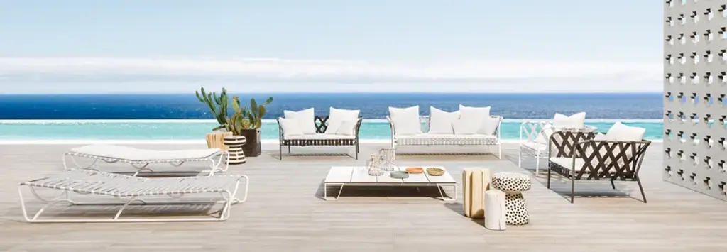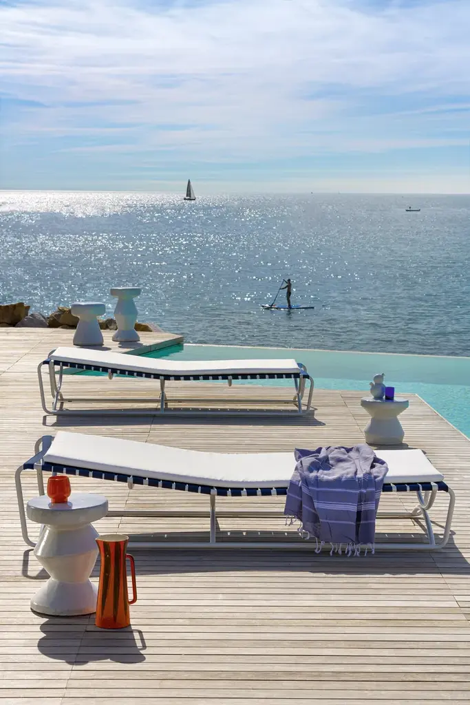 The Inout 884 cot is characterised by a fixed structure, not reclining, in Pearl, Oxido, Agate or Slate painted embossed tubular aluminium. The structure is enriched by a weave of blue, black, tobacco or grey elastic straps, upon which to rest a cot mattress with removable upholstery for greater softness.Inout is a broad and varied collection of chairs, stools, armchairs, sofas, tables, occasional tables, and accessories portraying the countless ways Gervasoni imagines spending time outdoors. Exotic suggestions are alternated with elements of sophisticated essentiality. Traditional outdoor materials such as wood, worked to enhance its natural properties, are paired with latest generation ones specifically designed to withstand weathering, but no less seductive and poetic. Even the weaving tradition is re-interpreted to resist against water and sunlight, maintaining its technical characteristics and colours unaltered over time.The Gervasoni Outdoor collection is the result of a careful selection of natural and technical materials worked with skillful craftsmanship and innovative technologies. The company’s products adapt to different styles of outdoor living, furnishing – with absolute ease, elegance and free customisation – terraces, gardens or swimming pools, from the most urban and contemporary to the most sophisticated or surrounded by nature. Each place has its own unique character that must be respected and enhanced. The key features of the range are, as always, attention to detail, excellent workmanship and in-depth research into materials.