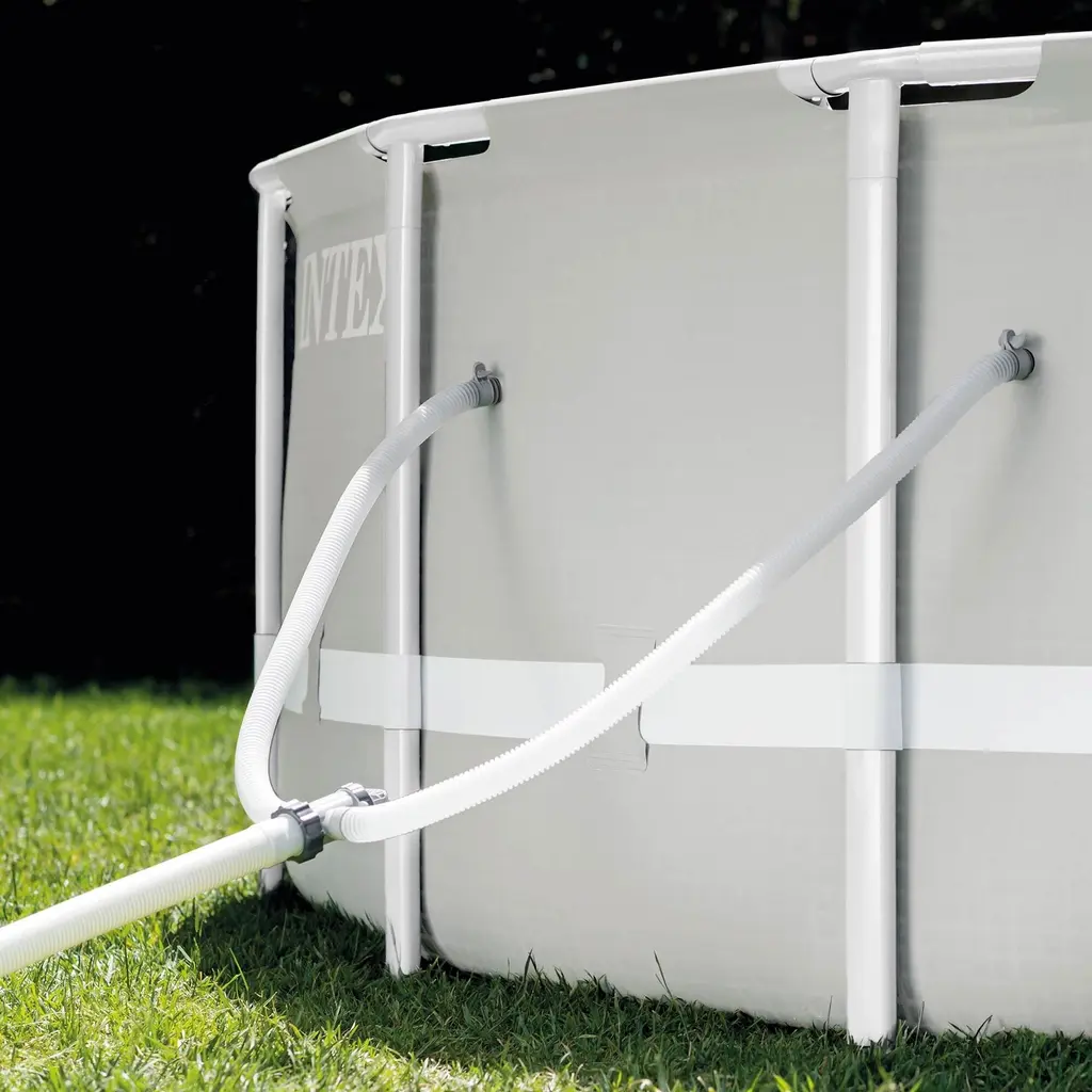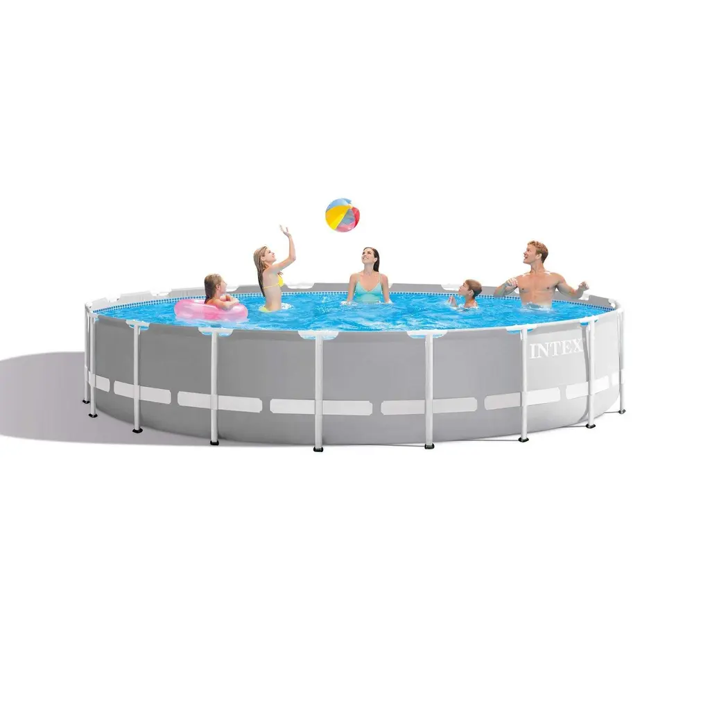 Bring a summer full of pool parties to your own backyard with this easy-to-assemble Intex 18-Foot x 48-Inch Prism Frame Swimming Pool Set. This package includes 2 Floating Recliner Loungers and 1 Inflatable Mega Chill II Beverage Cooler to make your backyard relaxation central. The Intex Prism Frame Pool Set has everything you need to start your backyard pool experience. After assembling in just 60 minutes, this pool is ready for water and fun. It comes with a cartridge filter pump, a ladder, ground cloth, and a debris cover. The only thing left to add is water, friends, and family! Oh and don't forget the drinks. The loungers come with cup-holders, so put them to good use with the 72-can beverage cooler float. Prism frame pools are constructed with strong, powder-coated steel tubing. The liner is stylish and constructed with puncture-resistant, 3-ply material for years of backyard fun. This above ground frame pool also features a 110-120V cartridge filter pump with a pump flow rate of 1,000 GPH. Relax by your very own pool in your very own backyard Above ground, Prism frame swimming pool measures 18-feet in diameter with a 4-foot height 110-120V cartridge filter pump with a pump flow rate of 1,000 gallons per hour Prism frame pools have strong powder-coated steel tubing with a stylish liner Includes a cartridge filter pump, pool ladder, ground cloth, debris cover, and instructional DVD for setup and maintenance Constructed with puncture-resistant, 3-ply material Hydro Aeration Technology pump for improved circulation, filtration, and water clarity Soft gray exterior and the elegant blue tile print interior provide an upscale look to complement your backyard patio decor and furniture Durable, easy to assemble, and ready for water in 60 minutes Recommended for ages 6 and up Specifications: Water capacity at 90%: 6,423 gallons Color: Gray Dimensions (L x W x H): 18 x 18 x 4 feet Weight: 213 pounds Manufacturer warranty: 90-day warranty Lounge around all day and catch some rays on the Intex Floating Recliner Lounge Lounge chair design for added comfort Pump not included Part number: 58868EP Quantity: 2 Color: Blue Dimensions: 71 x 53 inches Weight: 7.5 pounds Intex Inflatable Mega Chill II Beverage Cooler Float Space inside the cooler for up to a 72 cans and plenty of room for ice Part number: 58821EP Color: Blue Dimensions (L x W): 48 x 38 inches Weight: 7 pounds