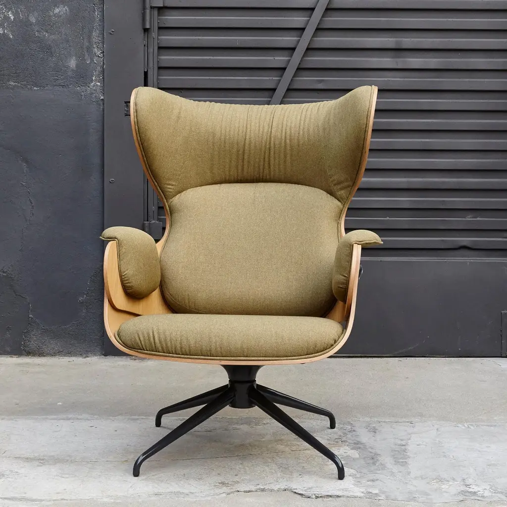 Jaime Hayon, Contemporary, Playwood Walnut Black Upholstery Lounger Armchair