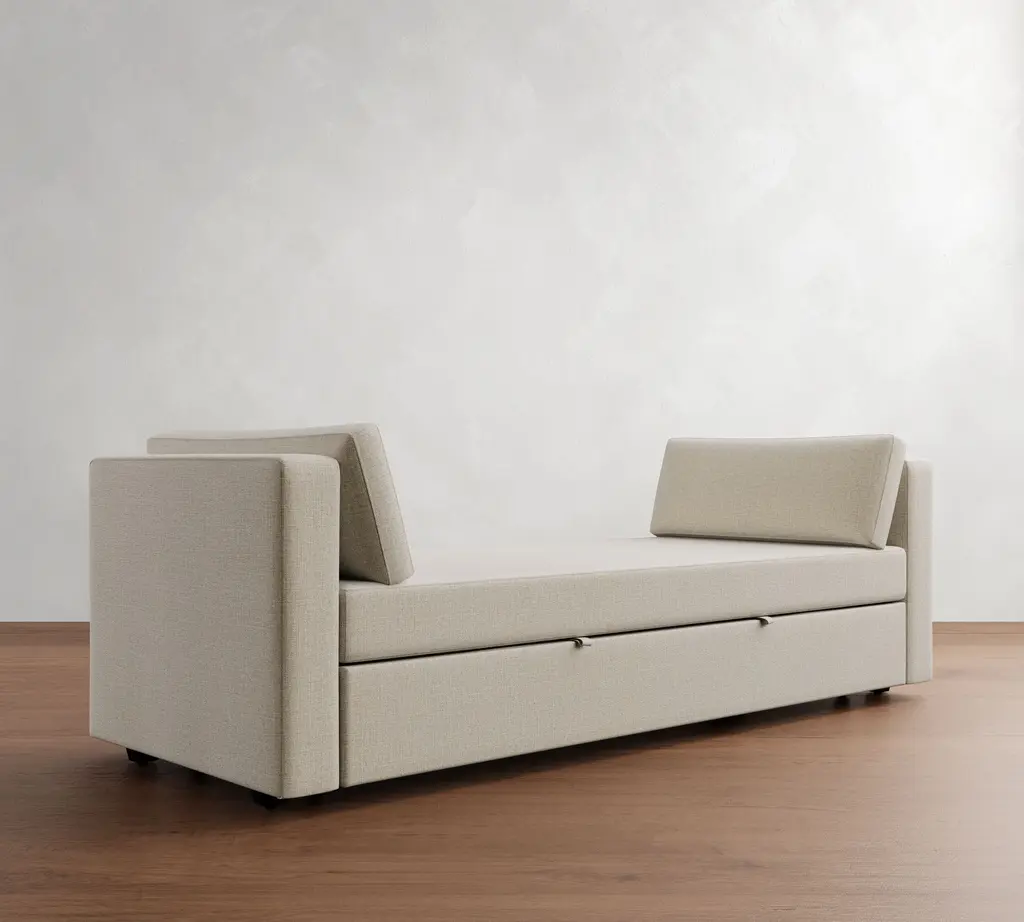 Superb comfort meets a simplified silhouette for a look that’s as refined as it is laid back. Our modular Jake Collection keeps it low profile, sitting closer to the ground. This daybed mixes uncompromising style with a flexible design – just pull out and up to take this from a settee to a sleeper.