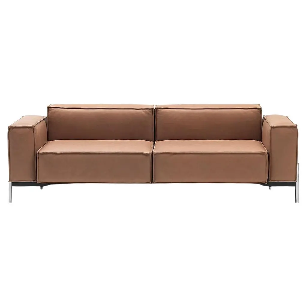 FSM Juna Sofa by De Sede. Luxurious lightness. Juna is quite clearly a clever symbiosis between elegant form and functionality. The sofa has slender legs that support a seat with two delicate upholstered layers. This charming construction has a harmonious appeal, and adds an unmistakable style to the living space. Yet the graceful appearance conceals a surprising amount of flexibility. Juna is designed to fulfill everything that is important in a stylish ambiance: watching TV, reading, sleeping or even just an extended spell of relaxing. The sofa model turns into a daybed in just a few movements, and a wide range of positions are available from sitting to lying with raised legs. Impossible to imagine? The secret is in the construction of the upholstery layers that are stacked on top of each other. The upper upholstery is a miracle of folding, and can be adjusted into an upright position. In this, the sofa suggests a recliner, and promises a special level of relaxing pleasure. Fold-down arm sections offer additional comfort. With its flexible options, this dynamic seat object provides the maximum comfort and coziness whilst remaining consistent in its sophisticated elegance.Details:Standard configuration: Legs, matte black-coated. The side sections are adjustable in increments.Upholstery and assembly: Sedex upholstery covered with wadding. Base frame made of steel tube with wooden panel, seat and side sections with high-quality strap suspension. Back made of panel materials.Substructure: Legs: matte black-coated, in different color for a surcharge. Glides for hard and soft floor coverings.Function: Armrests adjustable in increments, optional seat functions: for a surcharge, the left or right seating surface can be adjusted upwards to turn it into a backrest for the relax position.