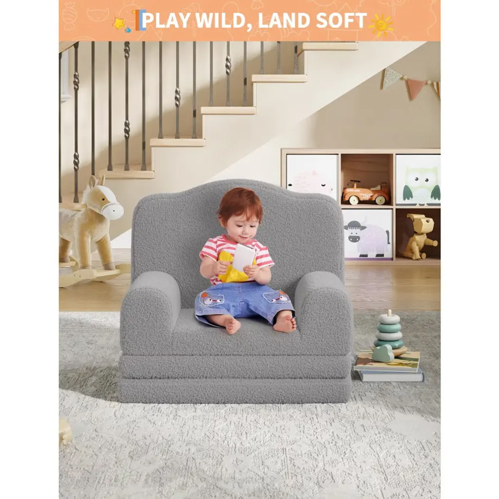 Looking for a kids sofa that's as playful as your child? Imagine a cozy, lightweight couch that instantly transforms into a lounger for naps or playtime¡ªwouldn't your little one love their own special spot to relax and have fun? Highlights at a Glance: unique wave design lightweight and portable 2-in-1 convertible couch high-density sponge support machine-washable cover vibrant color options anti-slip pad perfect for reading and napping Specification: Material: Teddy Fleece Fabric + Sponge Product Dimension: 17.7"D x 22.8"W x 19.7"H Color: Grey/ Green/ Pink/ White Packing List: 1 x Convertible Toddler Sofa Chair 1 x Instruction Manual Friendly Note: Adult supervision is recommended. Do not stand or jump on the sofa to prevent damage or injury. Avoid exposure to direct sunlight or heat sources to maintain color and shape.
