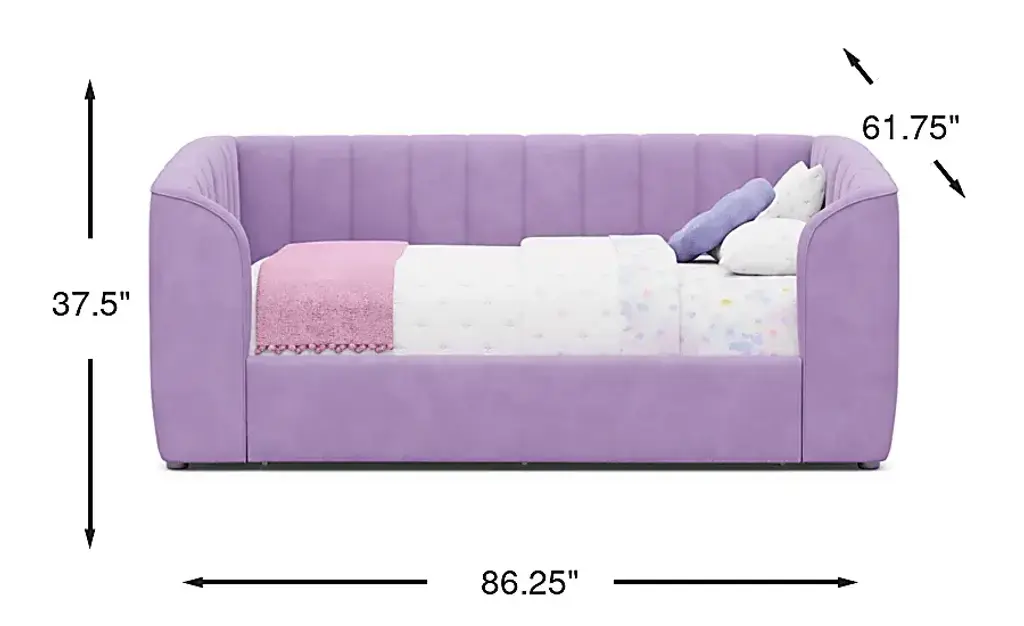Soft, sweet and altogether spectacular, the Gwyneth daybed is a gem for any kid's room. Fully upholstered with soft fabric in a lavender color, this full daybed features a high back and sides with vertical channeling for a cozy, lounge-ready look. A single storage drawer is built into the base of the frame, offering a smart solution for stashing bedding, toys, or clothes. Ball bearing glides make opening and closing the drawer easy. The drawer even comes with a divider that makes staying organized even easier. Mattress and foundation (if required) sold separately.