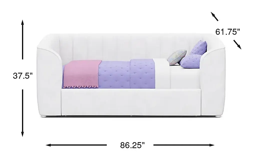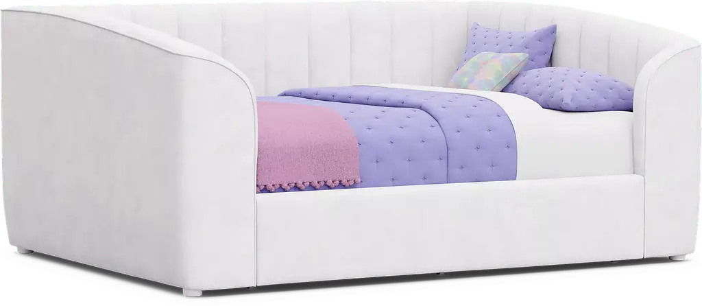 Soft, sweet and altogether spectacular, the Gwyneth daybed is a gem for any kid's room. Fully upholstered with soft fabric in a white color, this full daybed features a high back and sides with vertical channeling for a cozy, lounge-ready look. A single storage drawer is built into the base of the frame, offering a smart solution for stashing bedding, toys, or clothes. Ball bearing glides make opening and closing the drawer easy. The drawer even comes with a divider that makes staying organized even easier. Mattress and foundation (if required) sold separately.