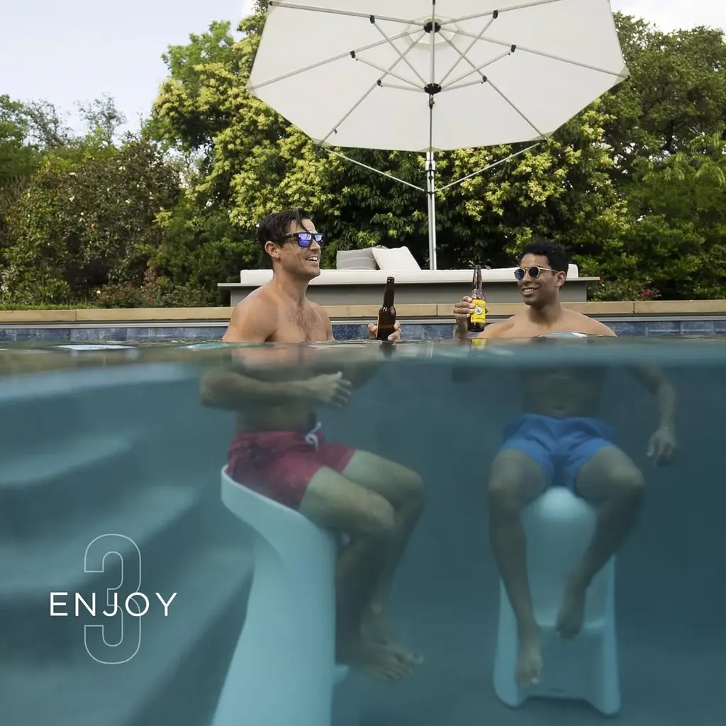 IN POOL BAR STOOL - The Signature Barstool raises the bar on outdoor entertaining. Complete your swim-up bar with two 33" height barstools. Wherever you set it, the Signature Barstool will transform your time outside in no time. Enjoy a few drinks, sit and socialize, or just spend some time chilling poolside. On these pool bar stools, you can do it all comfortably and stylishly. Toss in pool, watch it sink and enjoy! No construction crew required. The Signature Barstool's self-sinking technology allows effortless setup—just toss the bar stools into the pool, adjust the feet, and you're good to go. Whenever you want a better spot to sit, just pick up the repositionable barstool and move it over. The Signature Barstool is the perfect high-quality, durable, and weatherproof barstool for your outdoor space. Made with high-quality materials, these backless barstools are resistant to sun, rain, and snow - making them the perfect choice for any outdoor environment. So, you can keep enjoying all those perfect poolside moments. The Signature Pool Barstool is made in the USA and comes with a 2-year warranty.
