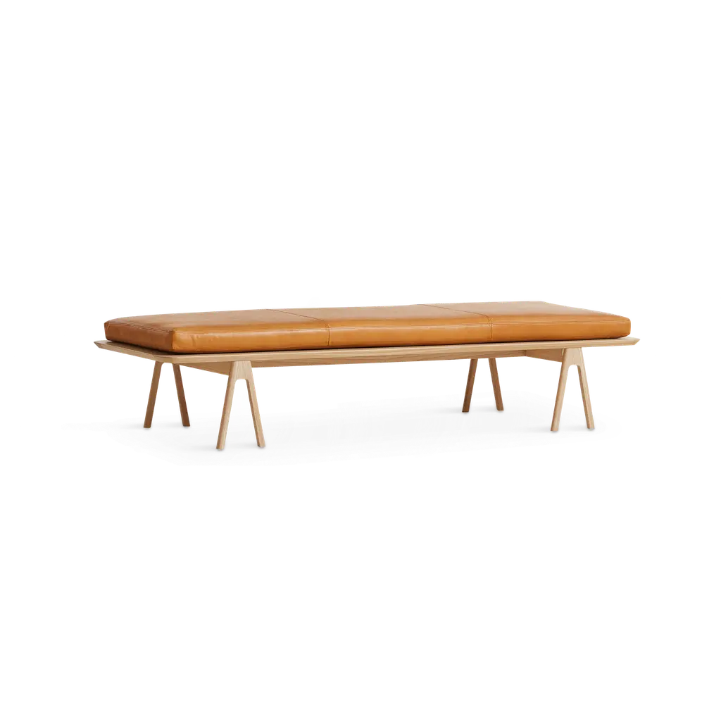 Woud’s Level is a simplistic wooden daybed designed by the Toronto-based MSDS Studio. Besides daytime napping, Level can be used as a sofa, divan or extra bed for guests. The Level daybed is built on a strong structure of sawhorses, and its elegant look comes from the combination of solid wood and soft mattress upholstered in luxurious aniline leather. The long-lasting and durable materials make Level a truly timeless design piece, whether you use it as a striking centerpiece in the living room or an extra bed in the guest room. Complement the daybed with the separately sold, matching leather pillow.