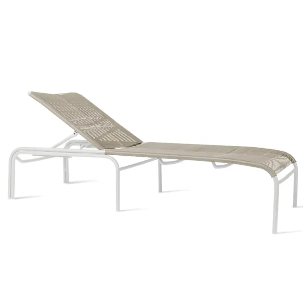 Revitalize your poolside relaxation time with the Vincent Sheppard Loop Outdoor Sunlounger. This reclining outdoor chair is built with a powder-coated aluminum frame and polypropylene fibre exterior, allowing for a breathable and lightweight design. The adjustable backrest allows for full user control when reclining. Sit up and read, slightly recline to chill or lay flat to tan in the warm sun. Use this chair to soak up warm rays by your pool all year long.