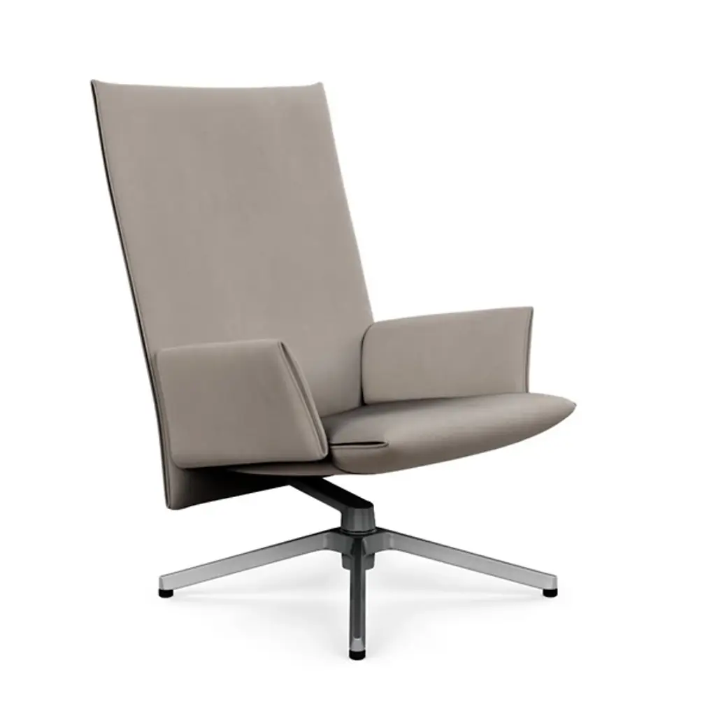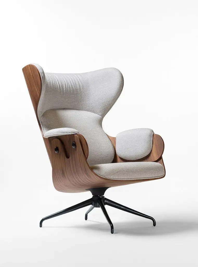 Lounger brown armchair by Jaime Hayon Dimensions: D 91 x W 76 x H 99 cm Materials: Armchair with a cast aluminum base structure and footstool with tubular steel legs and painted. Seat, backrest, and footstool in plywood and veneered in beechwood. Also available in other finishes: natural ash, ash-stained oak, or ash-stained black and walnut, natural effect. Also available in a single color, lacquered in red RAL 3004 (LAC M19) and Fusion Granat (TF122) material. Decorative metal buttons coated in the same finish as the structure. Armrests, seat, backrest, and footstool upholstered in different materials and leathers provided by BD. It has an elegance carried throughout the series, the comfort that this typology requires in an armchair, and the unmistakable hallmark in Hayon’s designs – contrasts between classicism and modernity, monochrome finishes, and quality manufacturing with material or leather upholstery. In the wake of its success, BD has added other pieces to the Collection by Jaime Hayon, one of these being The Lounger.In 1972, a group of young architects and designers from Barcelona created BD with the aim of producing and marketing furniture and other objects for our projects, with complete creative freedom and with a criterion that has turned out to be quite different from the norm at companies in the sector, regarding both the shape and function.