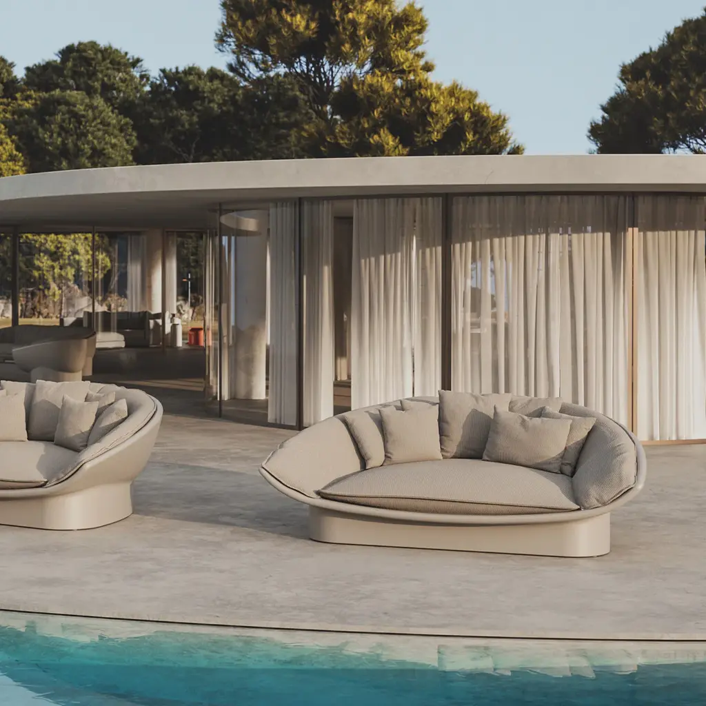 Indulge in the ultimate relaxation experience with the Luna Daybed from Vondom. Designed by Ramón Esteve, this piece seamlessly combines sustainability and comfort. Crafted from 100% recyclable polyethylene, it features plush cushions filled with polyurethane foam and synthetic fibres for hours of comfortable lounging. Unwind and rejuvenate in style with this luxurious daybed. Highlights
