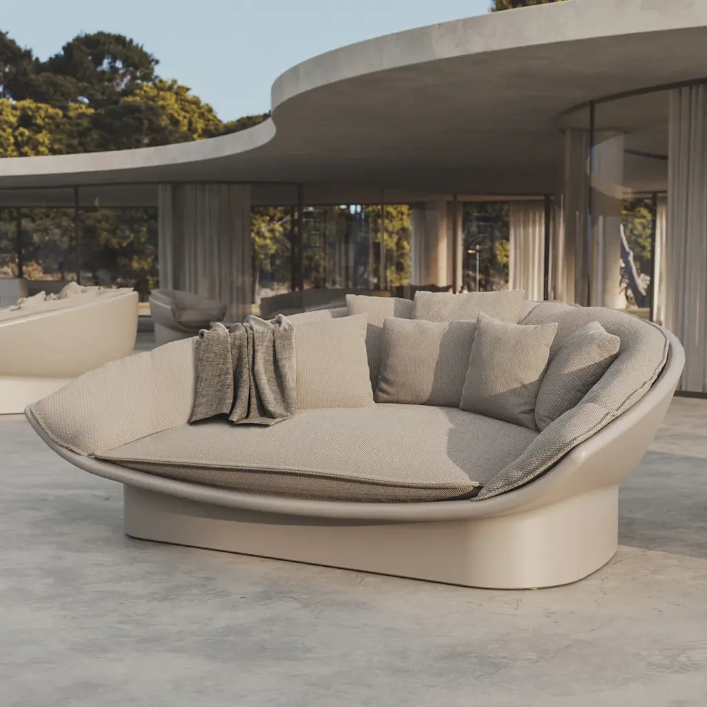 Indulge in the ultimate relaxation experience with the Luna Daybed from Vondom. Designed by Ramón Esteve, this piece seamlessly combines sustainability and comfort. Crafted from 100% recyclable polyethylene, it features plush cushions filled with polyurethane foam and synthetic fibres for hours of comfortable lounging. Unwind and rejuvenate in style with this luxurious daybed. Highlights