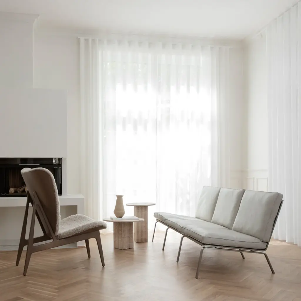 Inspired by the Bauhaus era where simple and clean shapes were in focus, the MAN Series is a collection of furniture with clean expression. Minimal materials and a functional design philosophy make the MAN Series aesthetically pleasing. The frame is made from stainless steel with a seat and back made of reinforced canvas. The cushions are upholstered with high quality leather and filled with fine down filling. The series consists of two- and three-seater sofas, lounge chair, daybed, chaise longue, coffee table and side table. The leather cushions come upholstered with various types of Premium or Vintage hides from Sørensen Leathers and the tables come with a fine black marble from the Iberian peninsula or a veiny green Indian marble. Note: The colour on the photos vary from the actual product you receive.