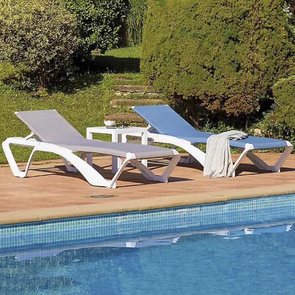 Experience the joy of relaxation with Marina Club Outdoor Sunlounger - Set of 2 by Resol. This modern sunlounger is more than just an outdoor seating solution; it's your personal haven of comfort. Crafted from durable polypropylene and textilene, the sunlounger boasts a design that combines lightness and high resilience, making it perfect for your garden, terrace, or balcony. Add this piece to your outdoor setup to enjoy those sunny days in ultimate comfort.