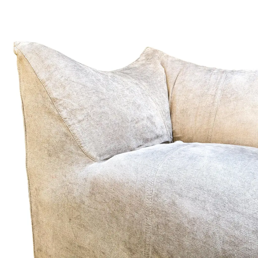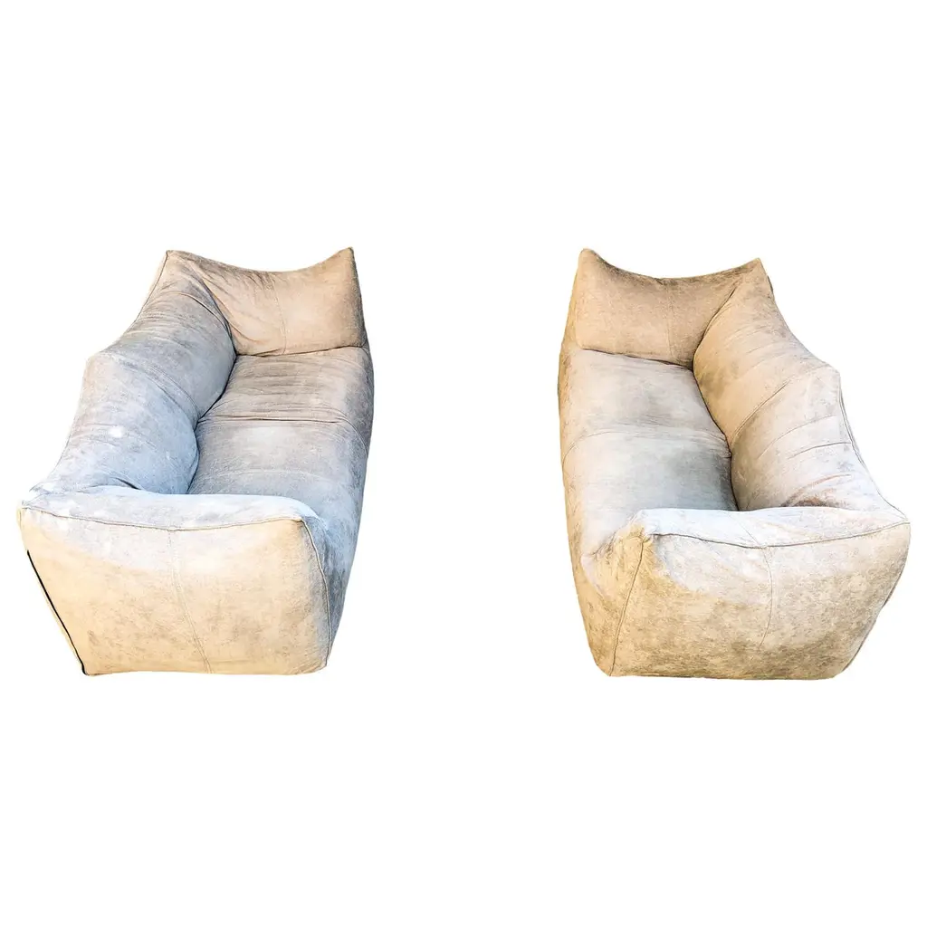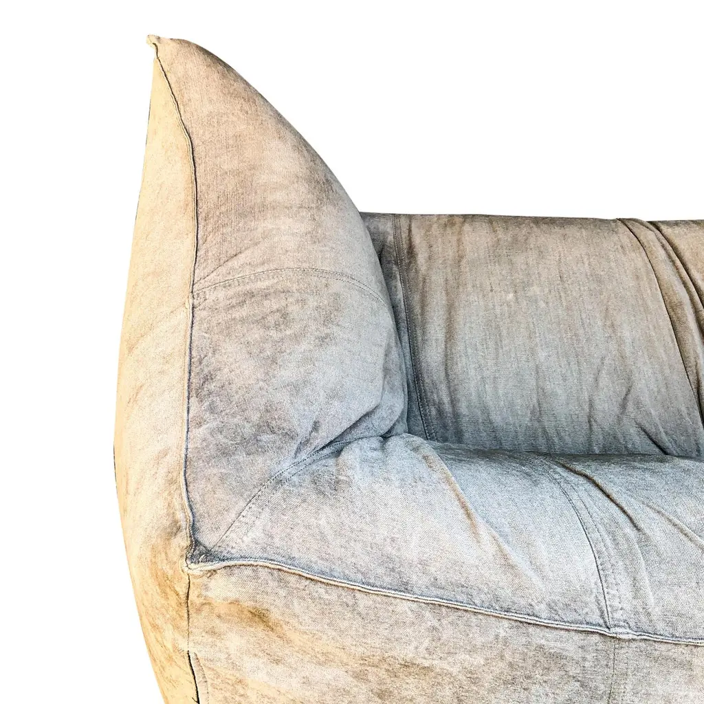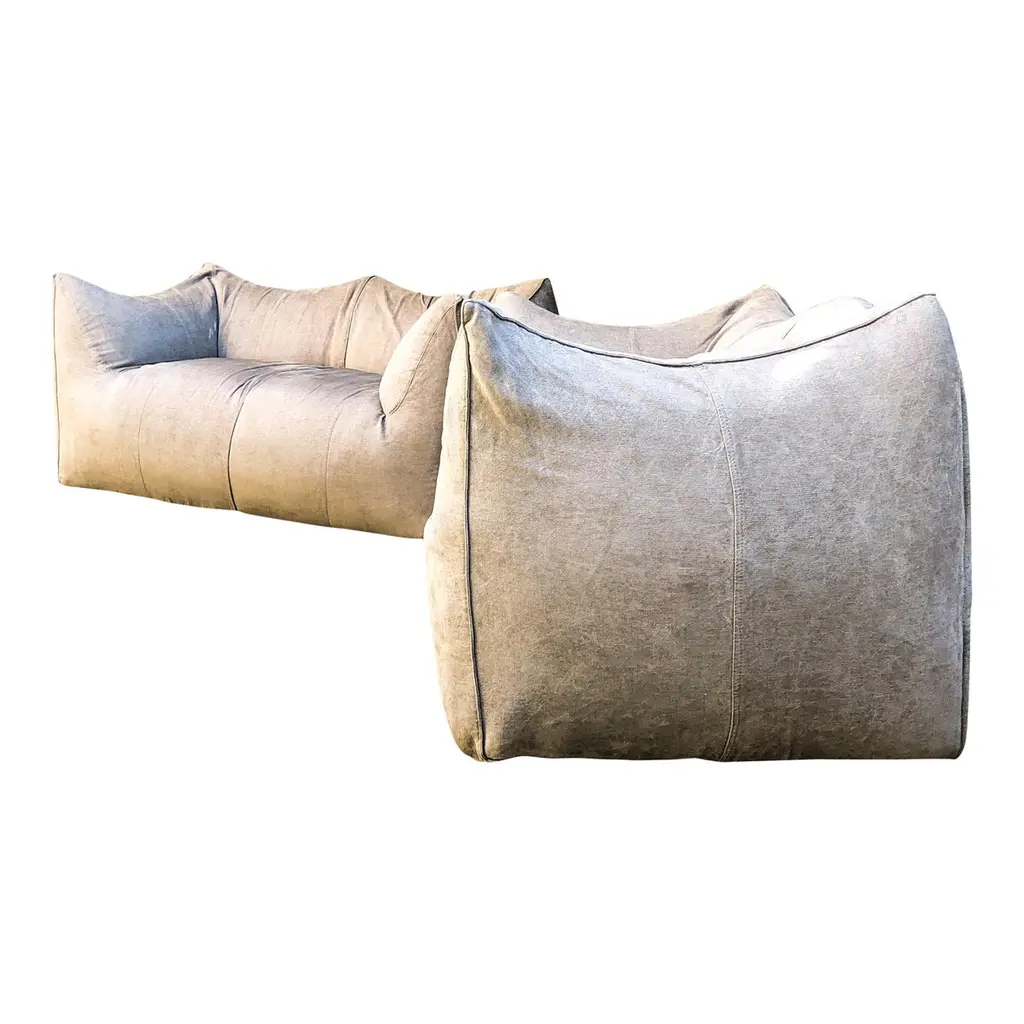 “Bibambola” sofa designed by Mario Bellini for B&B Italia.Original vintage version from 1976, recently reupholstered by the previous owner with a light grey fabric.This comfortable settee is bulky and playful, shaped as if it is merely a large cushion and the accompanying feeling is the same. The design of the Bambole series is the culmination of research into stuffed furniture. The piece is reduced to an archetypical idea of a cushion. The whole concept of this cushion is taken very far, as this piece is defined by the precise geometry of stitches and covers. The entire “Bambole” collection compromised a sofa, daybed, chaise longue, and bed. The prototypes of this collection were stuffed with a material that was the forerunner of memory foam. Later, to improve comfort, the metal frame that was inside in the beginning, and that was required for support, was removed, and it was filled with the stuffing itself. Le Bambole was awarded the Compasso d’Oro in 1979.Born in Milan in 1935, Mario Bellini graduated in architecture from the Milan Polytechnic in 1959 and set up practice as an architect in the early sixties. His work ranges from urban design and architecture to furnishing and industrial products. Renowned as a designer, in 1963, he began his relationship with Olivetti in charge of industrial design and went on to work with other companies both in Italy and abroad, amongst which Cassina. He won the Compasso d’Oro and other international awards more than once. His work is exhibited in the MoMA collection in New York, which, in 1987, dedicated a personal retrospective exhibition to his work. Since the 1980s, he has worked mainly in the field of architecture all over the world. His most well-known work includes the Portello buildings for the Milan Fair, the conference center of Villa Erba at Como, the extension of the National Gallery of Victoria in Melbourne, and the International Fair of Essen. From 1986 to 1991, he was director of Domus magazine. In 1987, in continuing the work of his studio opened in the 1960s, he founded Mario Bellini Associates, of which he is the president, whose services run from master planning to architecture and the design of stands and sets for exhibitions and museums. In 1996 product and furniture design were transferred to the Bellini Atelier, which he founded with his son Claudio. A winning duo: a mix of independence and interaction. Two generations in one family exchange integrate and confront each other. A special relationship characterized by reciprocal autonomy and by a deep understanding when working on shared projects. A constructive family bond that generates a positive drive enhancing creative energies and managerial skills.Literature:– Morteo, Enrico. Mario Bellini. Furniture, machines and objects. London: Phaidon, 2008, p. 98 – 99.– Graminga, Giuliana. Repertorio del Design Italiano 1950-2000 per L’Arredamento Domestico. Allemandi: Torino, 2003, p. 198.