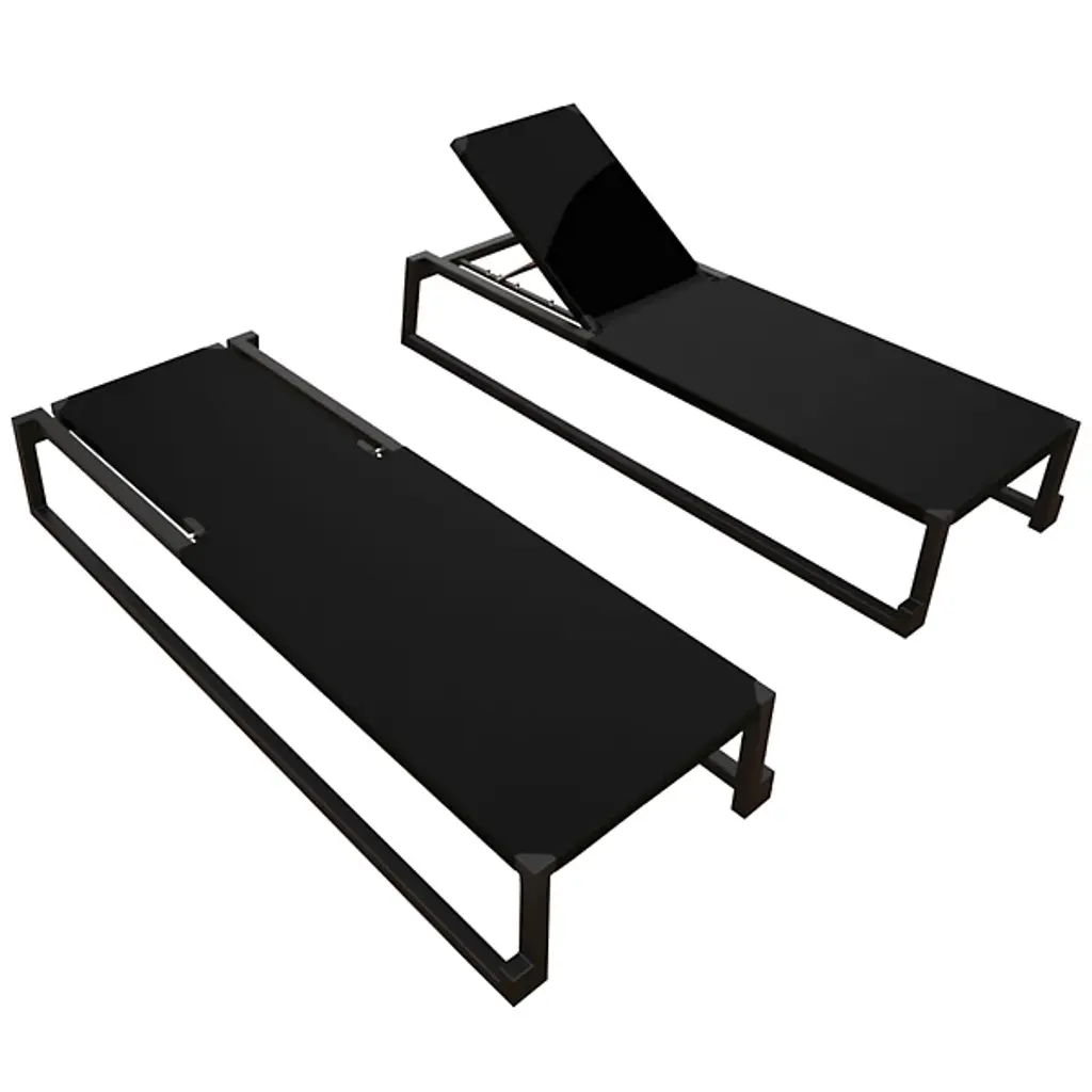 The Milano Sunlounger Structure Textilene - Set of 2 by Resol is a must-have addition to your outdoor living space. Perfectly crafted for your balcony or backyard, this Sunlounger offers the ideal blend of modern design elements with practical functionality. Crafted from a sturdy combination of aluminum and Textilene, it stands up to outdoor conditions, proving to be the ultimate choice for pool deck lounging or patio seating. While it enhances aesthetics, it also invites relaxation. Its contemporary style adds a touch of elegance, transforming your outdoor space into a haven for sunbathing and leisure.