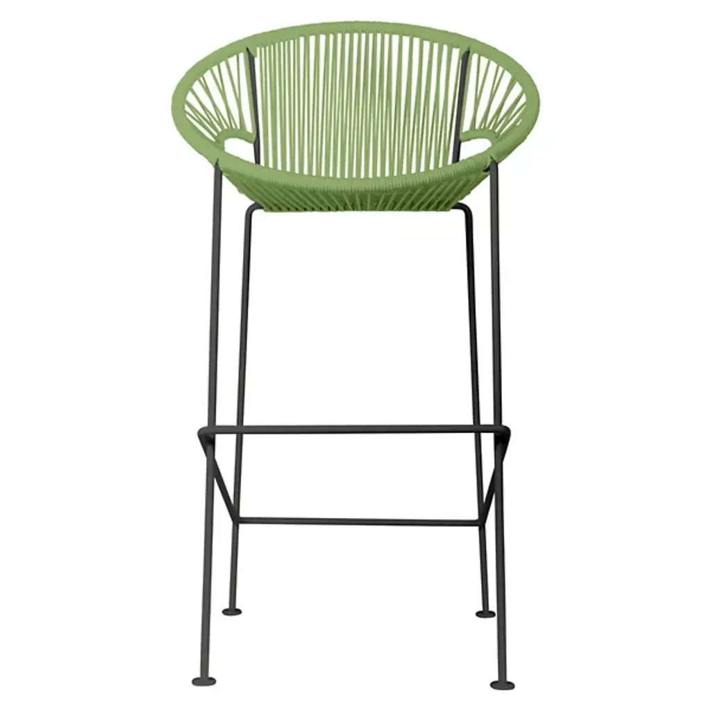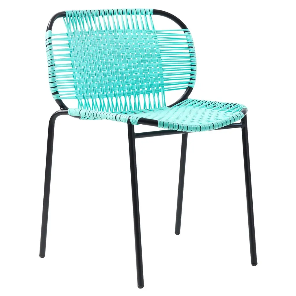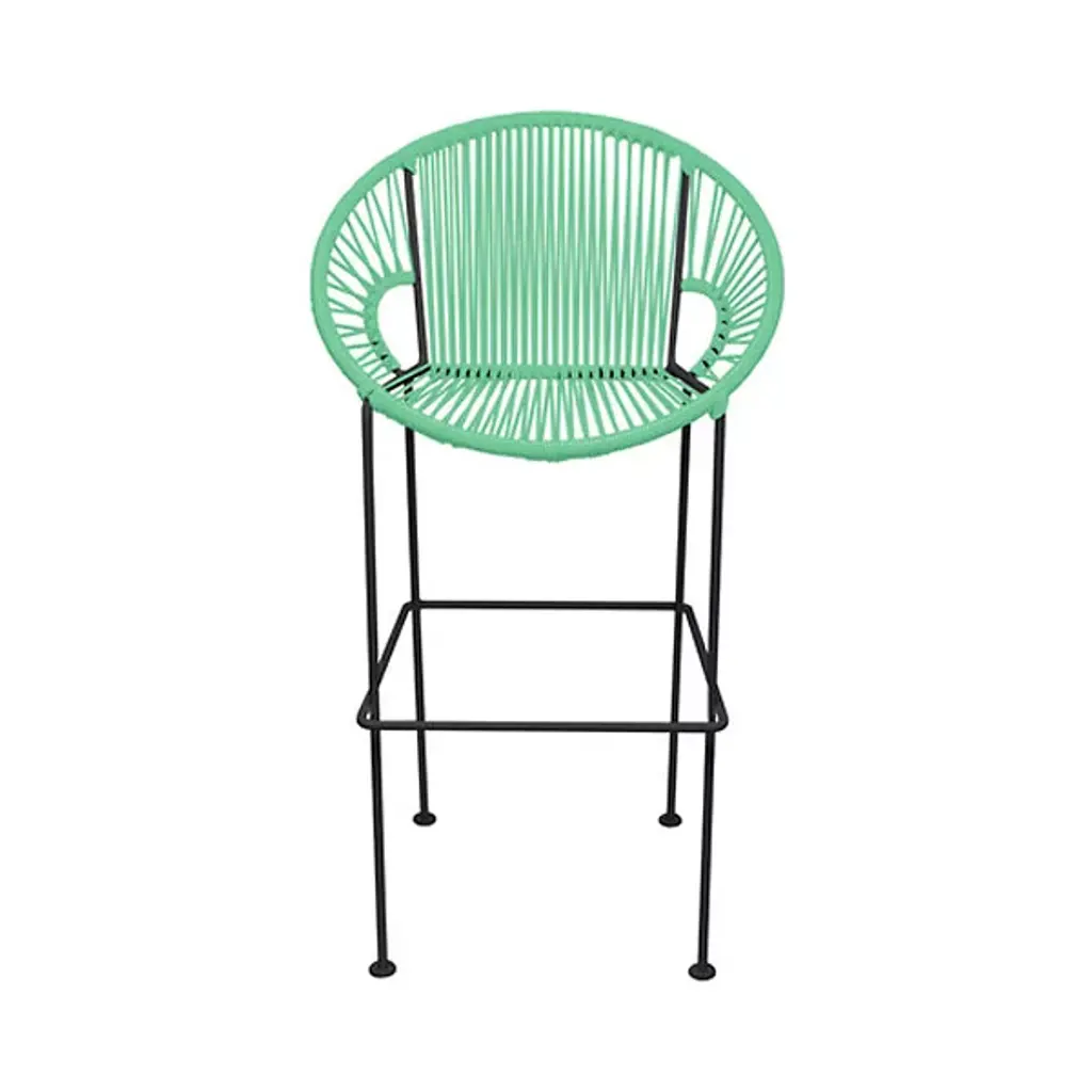 Mint Cielo bar stool by Sebastian HerknerMaterials: Galvanized and powder-coated tubular steel. PVC strings are made from recycled plastic.Technique: Made from recycled plastic and weaved by local craftspeople in Cartagena, Colombia. Dimensions: W 52 x D 46.6 x H 101 cm Also available colors: Brown, mint/ black, black-black, olive/ menta, purple/ carne, honey/ menta.The Cielo bar stool is a light and versatile design by Sebastian Herkner. It’s ready for indoor and outdoor use and will spruce up bar counters at home or in hospitality spaces. Available in various color combinations, the stackable chair can also add personality to dining areas of restaurants or hotels. Like the daybed and lounge chairs of the collection, the colors and look are inspired by Sebastian’s visits to Colombia. There, he not only immersed himself in the culture and beauty of the country but also met the local Ames artisans and learned about their traditional weaving techniques.Each armchair is made in Santa Marta, a city on the Caribbean coast of Colombia, by local craftspeople. They weave the PVC strings, which are made from recycled plastic, around a powder-coated tubular steel frame. The weaving technique the artesanos and artesanas use are called Momposino, a traditional method known for intricate patterns. Just the preparation of all the materials takes ten days, while the production of each armchair takes three days.German designer Sebastian Herkner is a long-term collaborator of Ames and has visited Colombia multiple times to experience the country’s cities, nature and people first hand. He also visited many of the ateliers that Ames has partnered with to learn about the unique traditional crafts of Colombia's regions. A sought-after contemporary designer and recipient of many industry awards, he has worked with many international design brands, creating intriguing pieces that showcase his intuition for interesting material, color, and texture combinations.