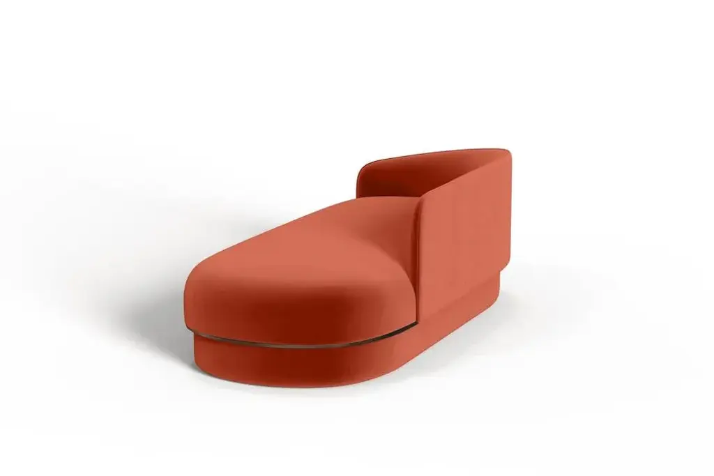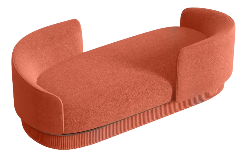 Modern Gentle Daybed In Salmon Velvet And Bronze Metal By Javier Gomez