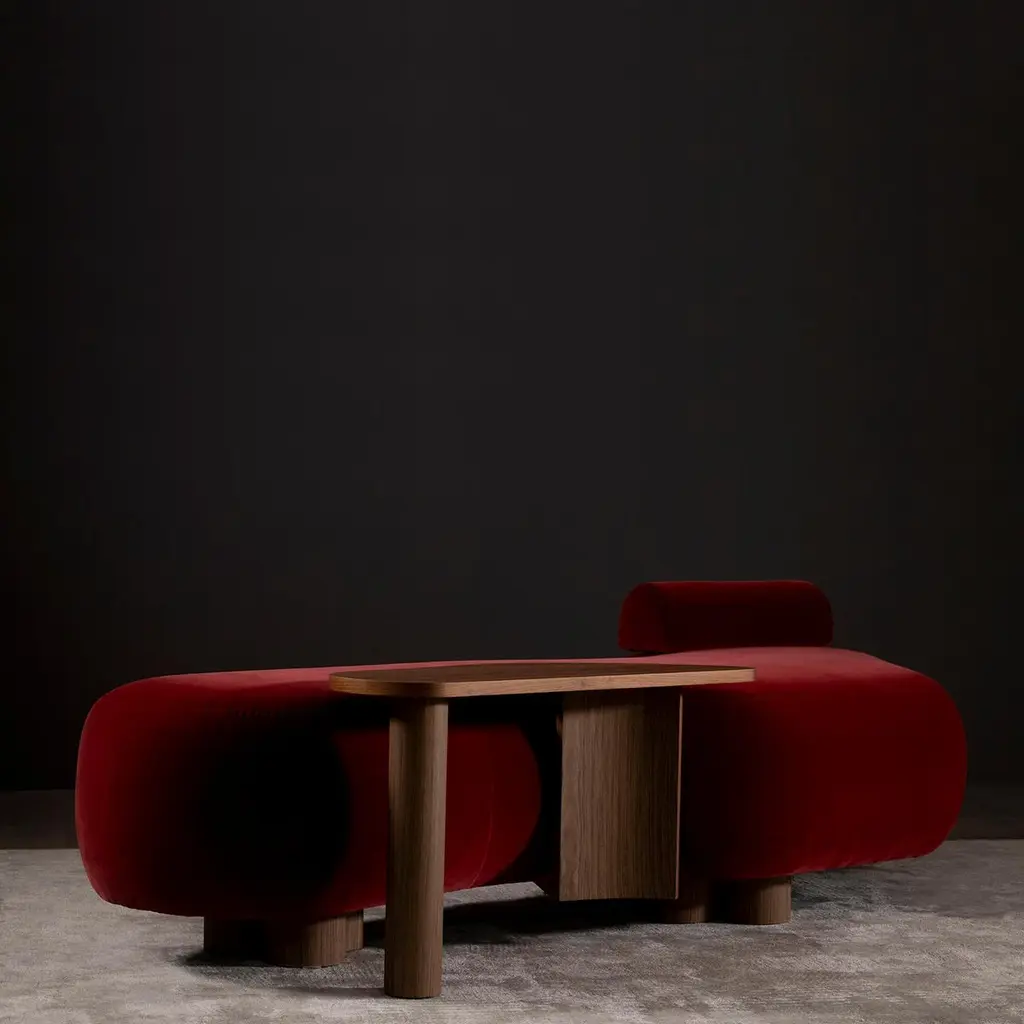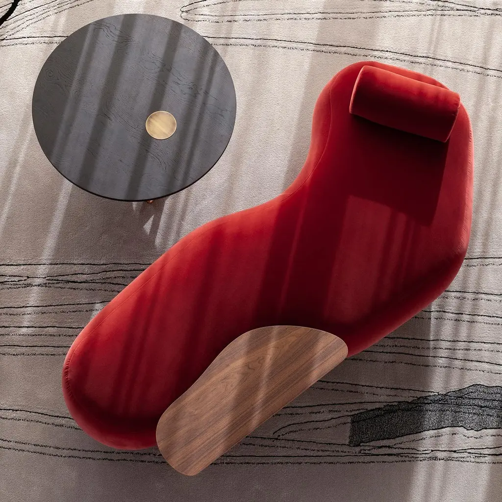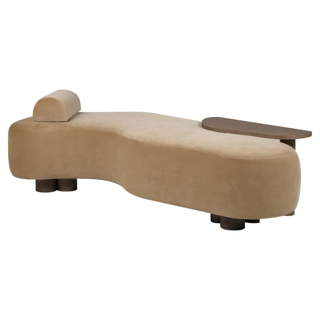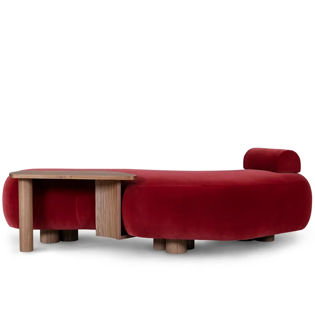 Mid-Century Modern Minho Day Bed, Contemporary Collection, Handcrafted in Portugal - Europe by Greenapple.The Minho daybed is a modern reinterpretation of traditional furniture design. Inspired by the flowing curves of the Minho River, its sweeping lines and sculptural silhouette evoke a sense of movement and elegance. The integrated side table enhances its functionality, making it a statement piece in any space. A favorite among designers, the Minho daybed seamlessly blends artistry and craftsmanship, offering timeless sophistication for contemporary interiors.The Minho chaise longue is fully upholstered in red velvet.Its structure is made from anti-fungal and vermin-free solid steamed beechwood and birch plywood, ensuring exceptional strength and stability. The chaise rests on two bases crafted form American oak veneer stained in brown walnut with open-pore and matte varnish. The veneer is anti-fungal and vermin-free, ensuring longevity and preservation.The Minho day bed can be customized in terms of dimensions, materials and finishes.Minho Day Bed Material CodesWD123 American Oak, Stained Open-pore, Varnished, Brown Walnut, MatteM104818 Velvet, RedHandcrafted in Portugal - Europe by GreenappleUnique by design, Crafted by peopleGreenapple transforms contemporary spaces into exclusive narratives of design and craftsmanship. From custom-made furniture to bespoke interiors, each creation is a timeless work of art, shaped by master artisans who honor centuries-old techniques.Founded in 2005 by Sérgio Rebola and Rute Martins, Greenapple has earned global recognition among high-end clientele and leading design firms. While Rute designs each unique piece, Sérgio ensures uncompromising quality from design to production and from production to your home. We provide a seamless experience, offering short production lead times, worldwide delivery within 7 to 10 days, and white-glove service upon request.For U.S. clients, we can handle all customs clearance, cover duties, and offer white-glove service as well upon request.Day Bed, Chaise