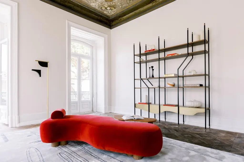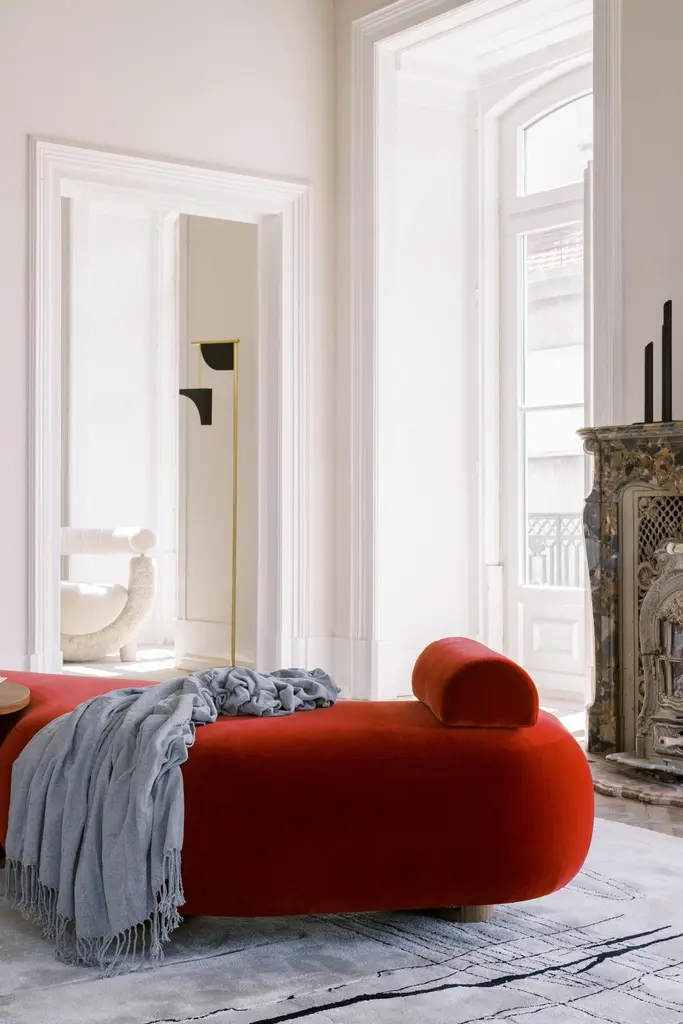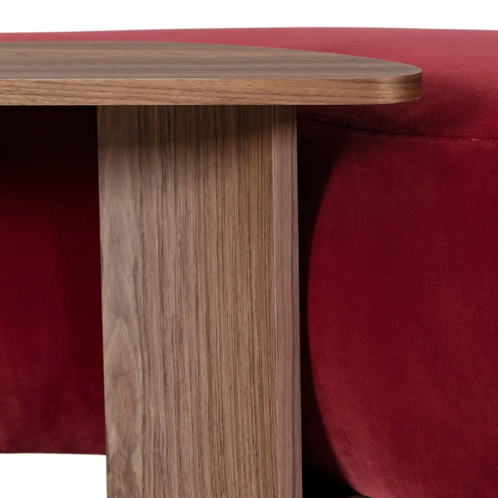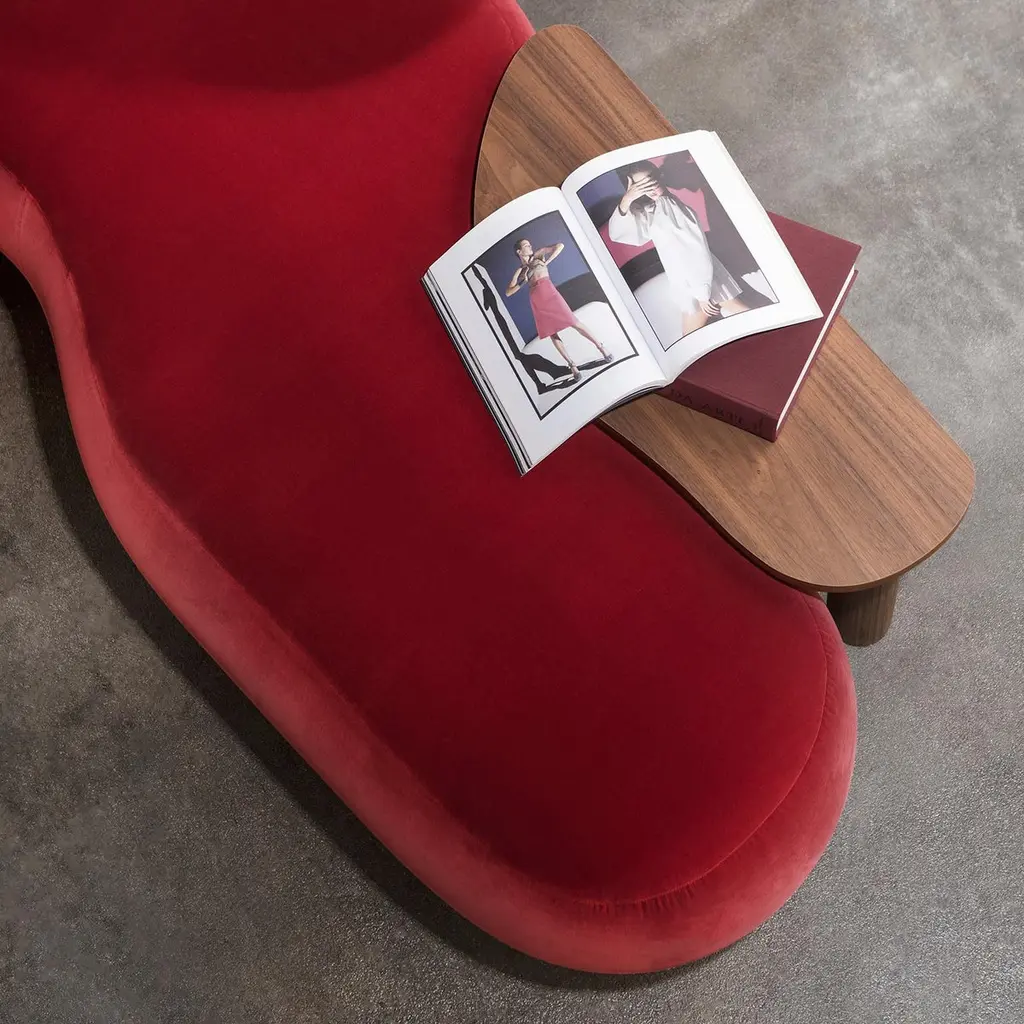 Mid-Century Modern Minho Day Bed, Contemporary Collection, Handcrafted in Portugal - Europe by Greenapple.The Minho daybed is a modern reinterpretation of traditional furniture design. Inspired by the flowing curves of the Minho River, its sweeping lines and sculptural silhouette evoke a sense of movement and elegance. The integrated side table enhances its functionality, making it a statement piece in any space. A favorite among designers, the Minho daybed seamlessly blends artistry and craftsmanship, offering timeless sophistication for contemporary interiors.The Minho chaise longue is fully upholstered in red velvet.Its structure is made from anti-fungal and vermin-free solid steamed beechwood and birch plywood, ensuring exceptional strength and stability. The chaise rests on two bases crafted form American oak veneer stained in brown walnut with open-pore and matte varnish. The veneer is anti-fungal and vermin-free, ensuring longevity and preservation.The Minho day bed can be customized in terms of dimensions, materials and finishes.Minho Day Bed Material CodesWD123 American Oak, Stained Open-pore, Varnished, Brown Walnut, MatteM104818 Velvet, RedHandcrafted in Portugal - Europe by GreenappleUnique by design, Crafted by peopleGreenapple transforms contemporary spaces into exclusive narratives of design and craftsmanship. From custom-made furniture to bespoke interiors, each creation is a timeless work of art, shaped by master artisans who honor centuries-old techniques.Founded in 2005 by Sérgio Rebola and Rute Martins, Greenapple has earned global recognition among high-end clientele and leading design firms. While Rute designs each unique piece, Sérgio ensures uncompromising quality from design to production and from production to your home. We provide a seamless experience, offering short production lead times, worldwide delivery within 7 to 10 days, and white-glove service upon request.For U.S. clients, we can handle all customs clearance, cover duties, and offer white-glove service as well upon request.Day Bed, Chaise