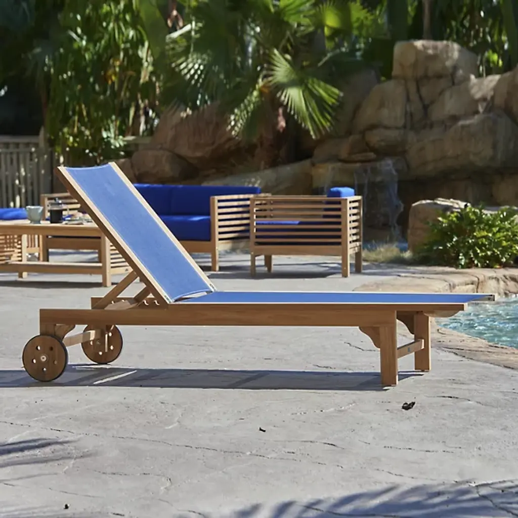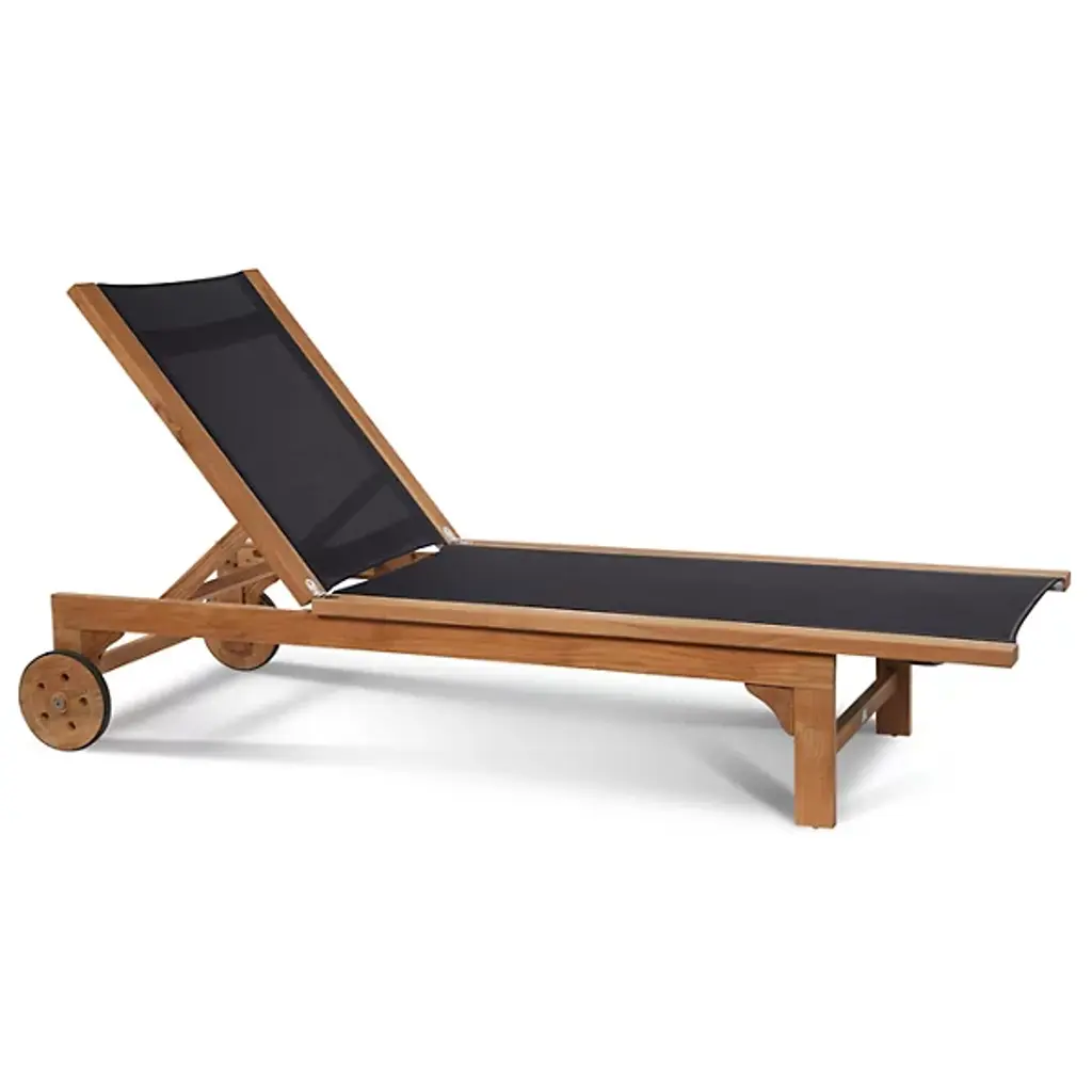 Take in the beauty of your outdoor patio with the Montauk Outdoor Sunlounger from HiTeak Furniture. Made of natural teak wood throughout, this piece expresses a simple elegance that elevates the surrounding décor. Two sturdy legs with subtle curves rest on one end while a pair of wheels connect on the other end, allowing for easy transport and slight adjustments. A soft, textile material runs the length of the piece, providing comfort for hours on end.