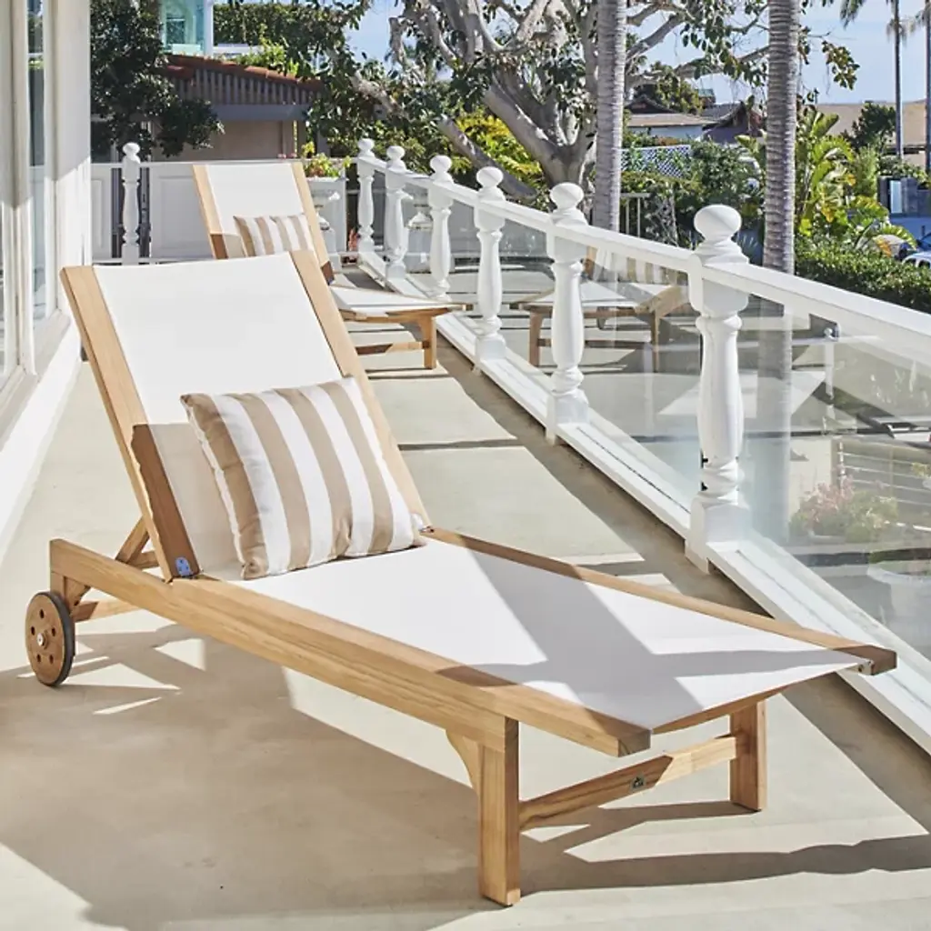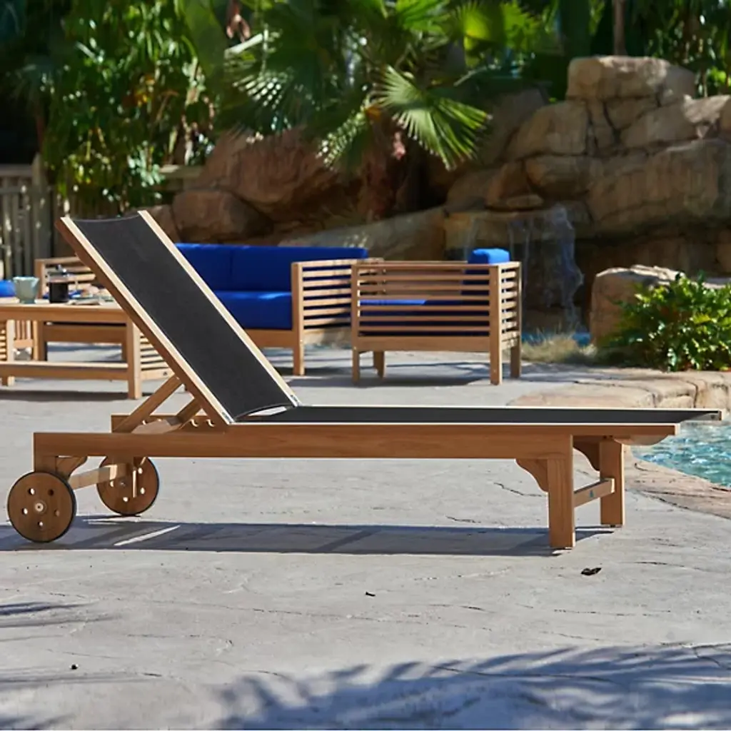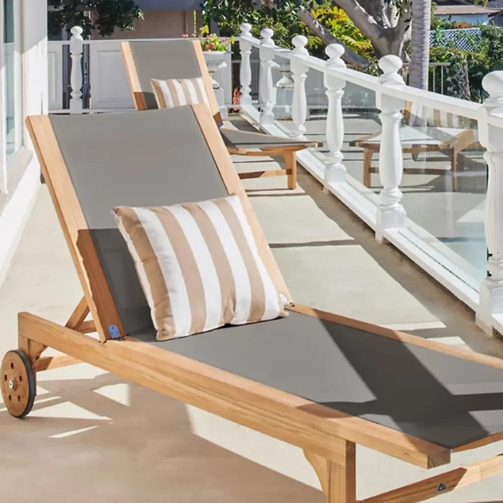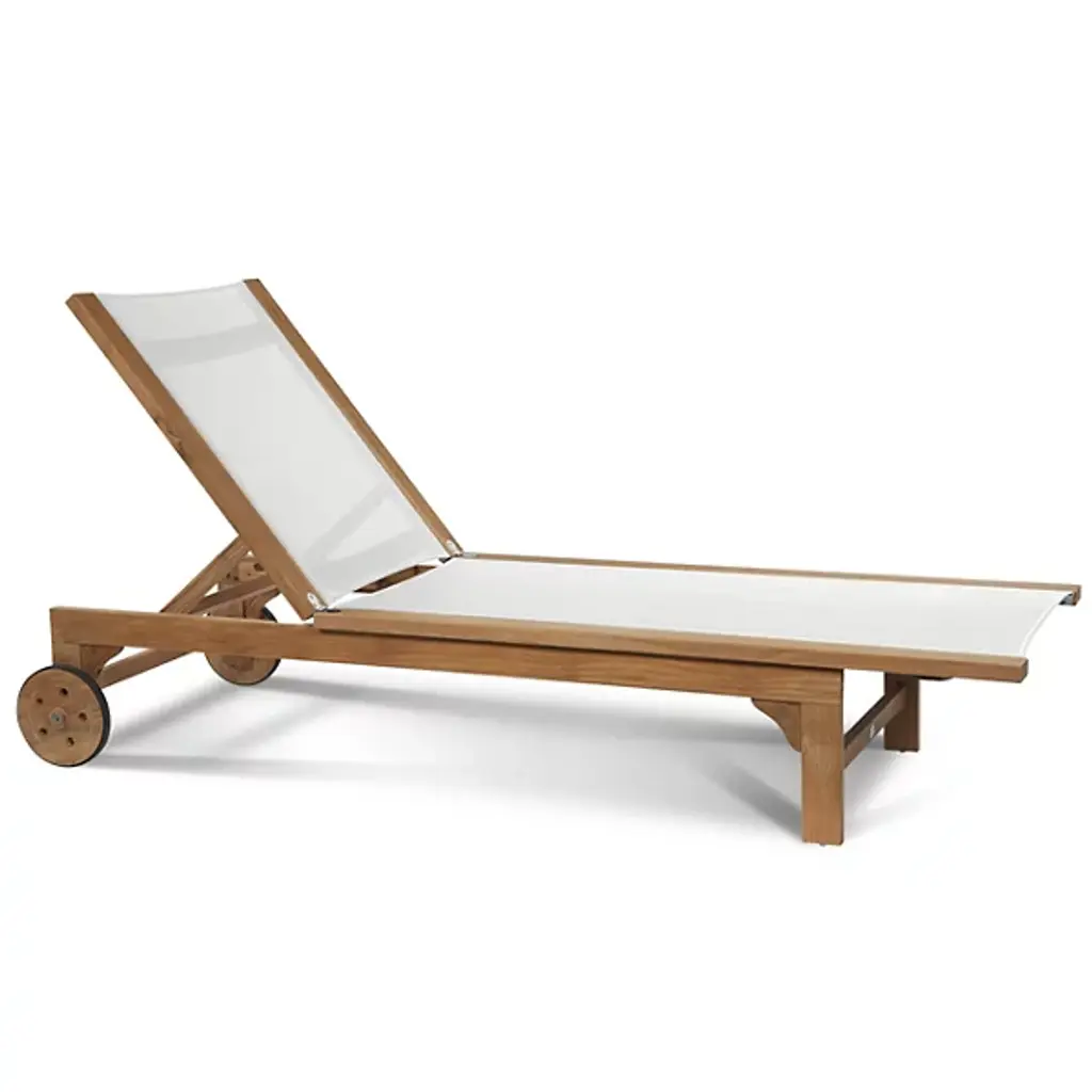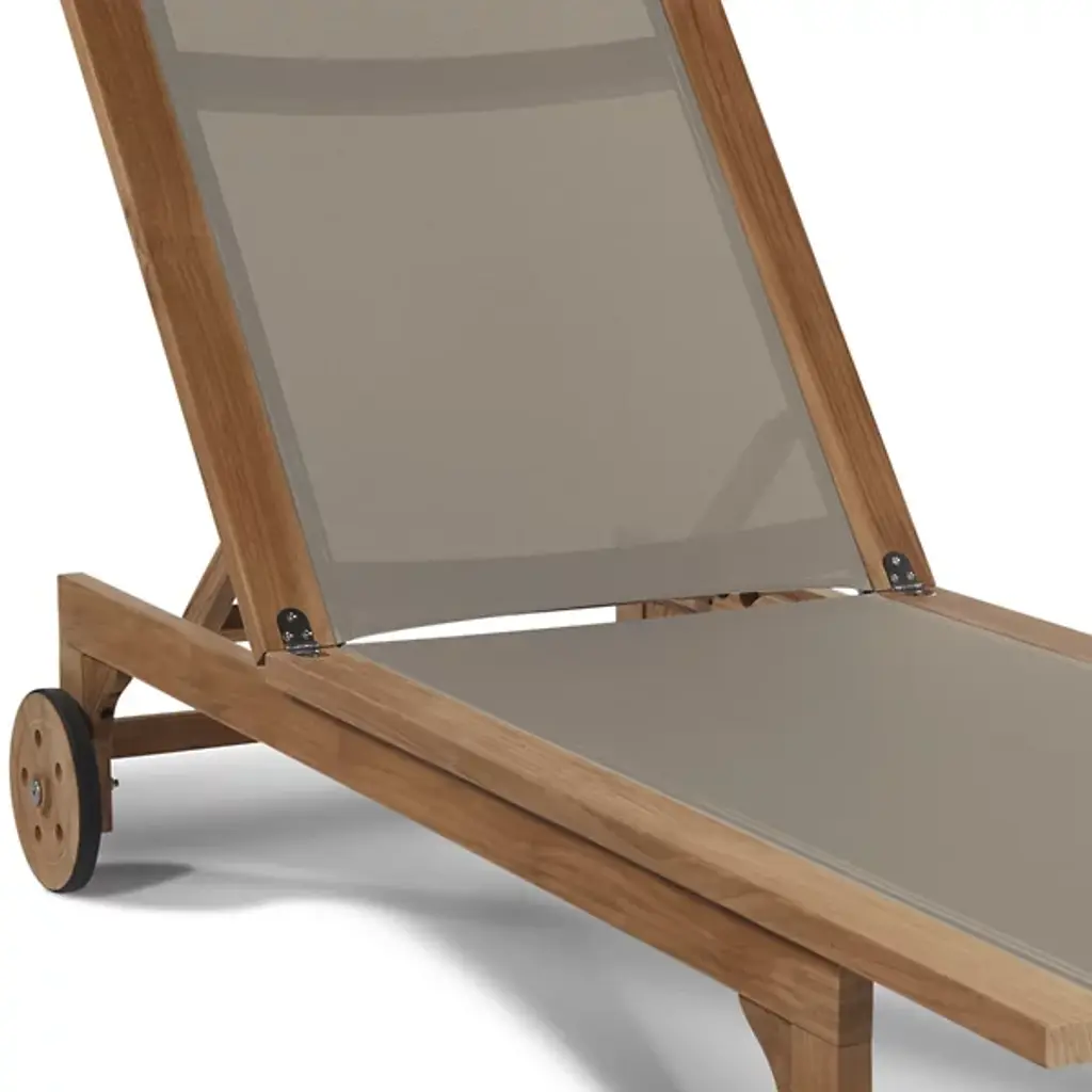 Take in the beauty of your outdoor patio with the Montauk Outdoor Sunlounger from HiTeak Furniture. Made of natural teak wood throughout, this piece expresses a simple elegance that elevates the surrounding décor. Two sturdy legs with subtle curves rest on one end while a pair of wheels connect on the other end, allowing for easy transport and slight adjustments. A soft, textile material runs the length of the piece, providing comfort for hours on end.