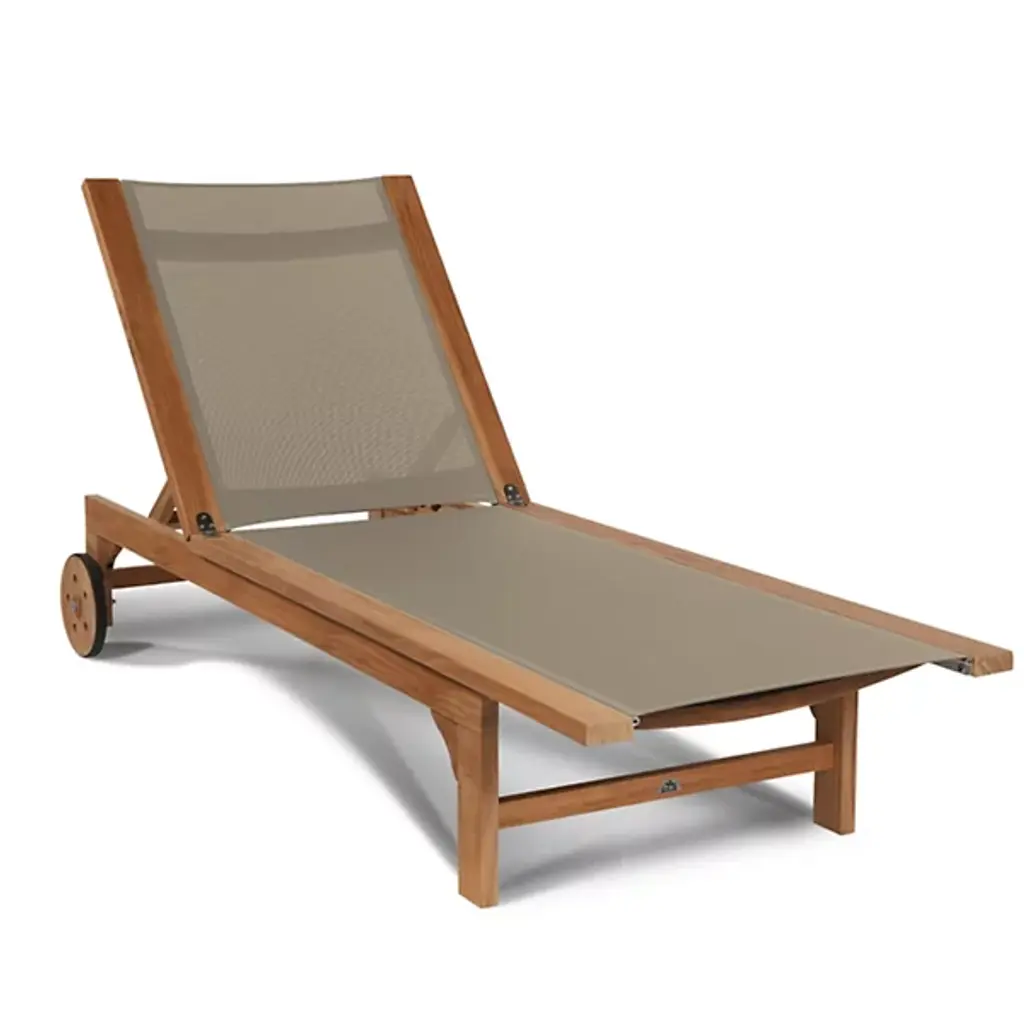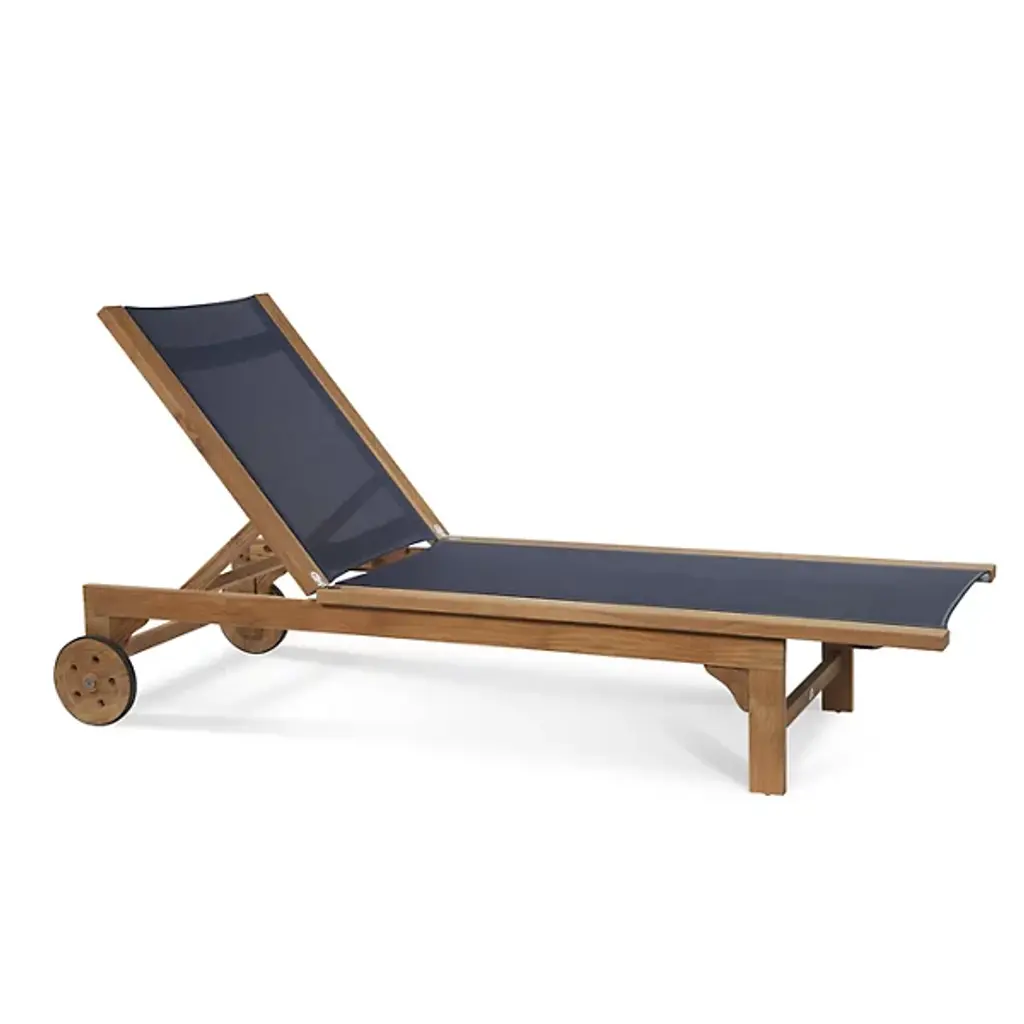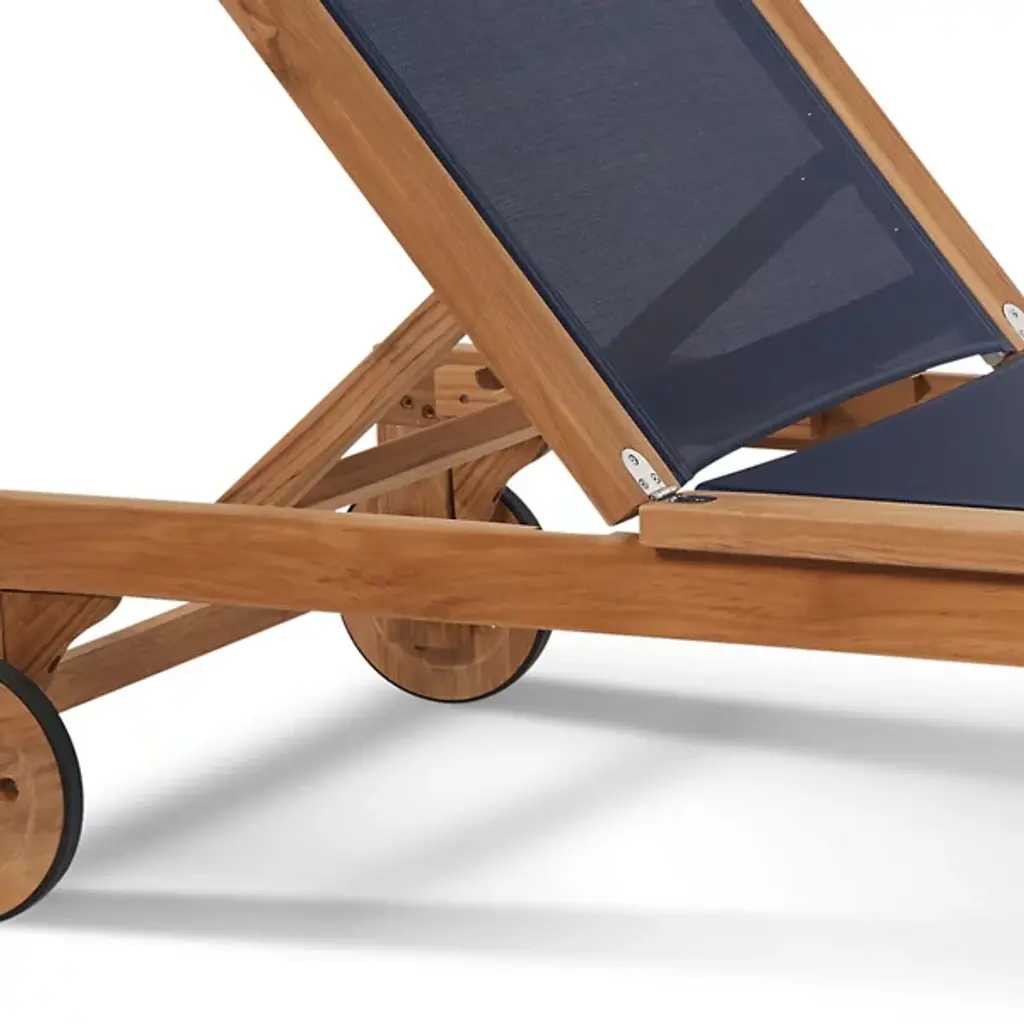 Take in the beauty of your outdoor patio with the Montauk Outdoor Sunlounger from HiTeak Furniture. Made of natural teak wood throughout, this piece expresses a simple elegance that elevates the surrounding décor. Two sturdy legs with subtle curves rest on one end while a pair of wheels connect on the other end, allowing for easy transport and slight adjustments. A soft, textile material runs the length of the piece, providing comfort for hours on end.