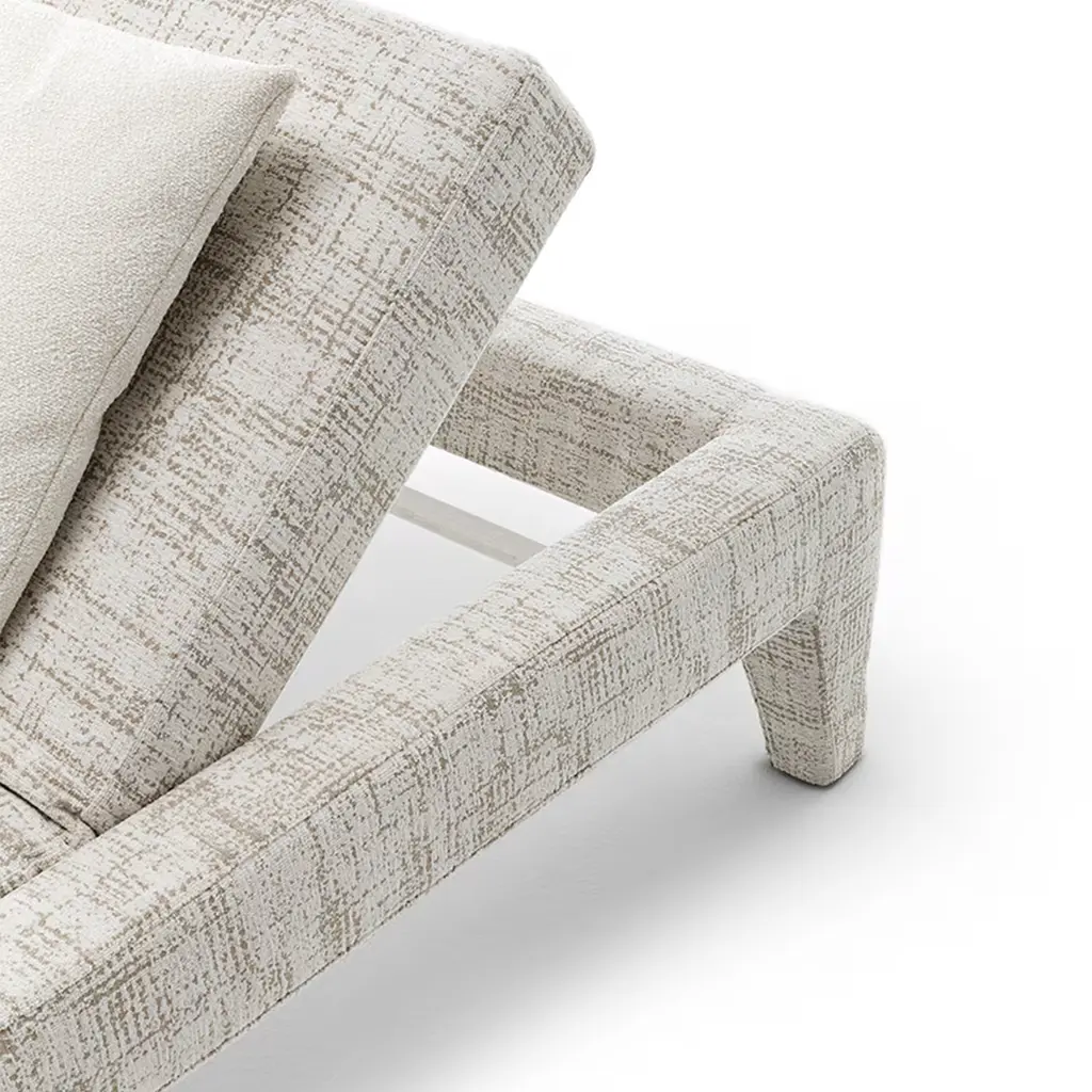 Designed for enjoying sun-soaked days by the pool without renouncing class, this sun lounger couples clean lines with a cozy feel. Utmost lightness and practicality is owed to the waterproof aluminum core that, thanks to the generous padding, offers an experience of pure comfort further aided by the superior-category Falesia fabric upholstery that also boasts a striking resistance to dried salt and sun rays exposure. If the products are placed completely outside, nightcovers that can be purchased at an extra price are recommended. Please contact the Concierge for further information.