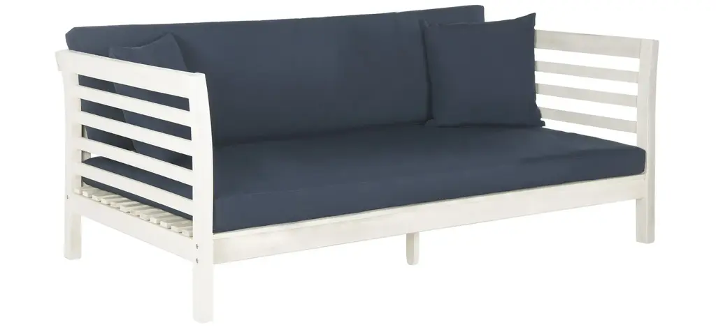 A contemporary twist on a resort classic, the Moore daybed transforms any outdoor space into a relaxing zen oasis. The sleek look of its single seat and back cushions in all weather fabric is perfectly contrasted with the warmth of acacia wood in a rich natural finish.