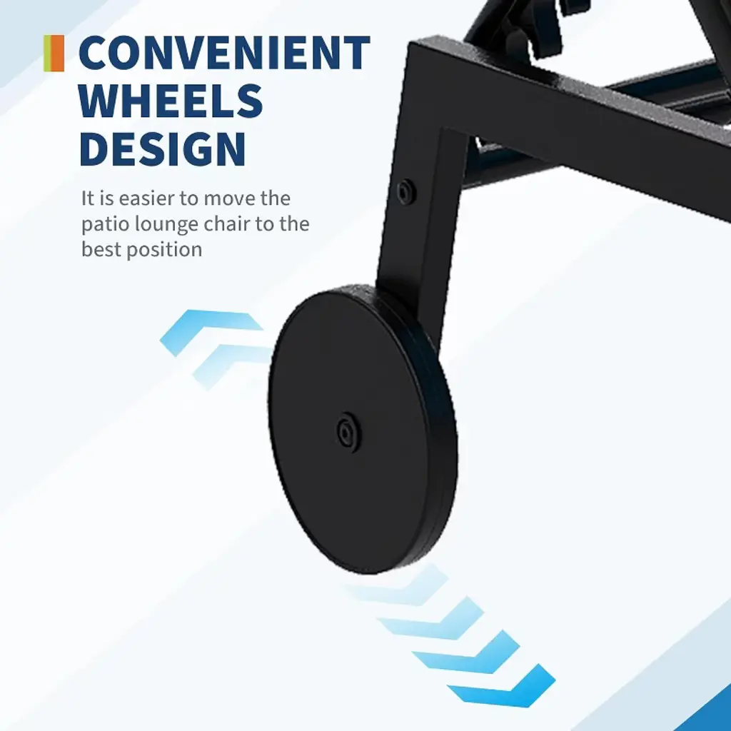 Nasitip 3-piece Poolside Lounger Set With Adjustable Backrest, Wheels & Side Table, Outdoor Patio Chaise Lounge Chairs