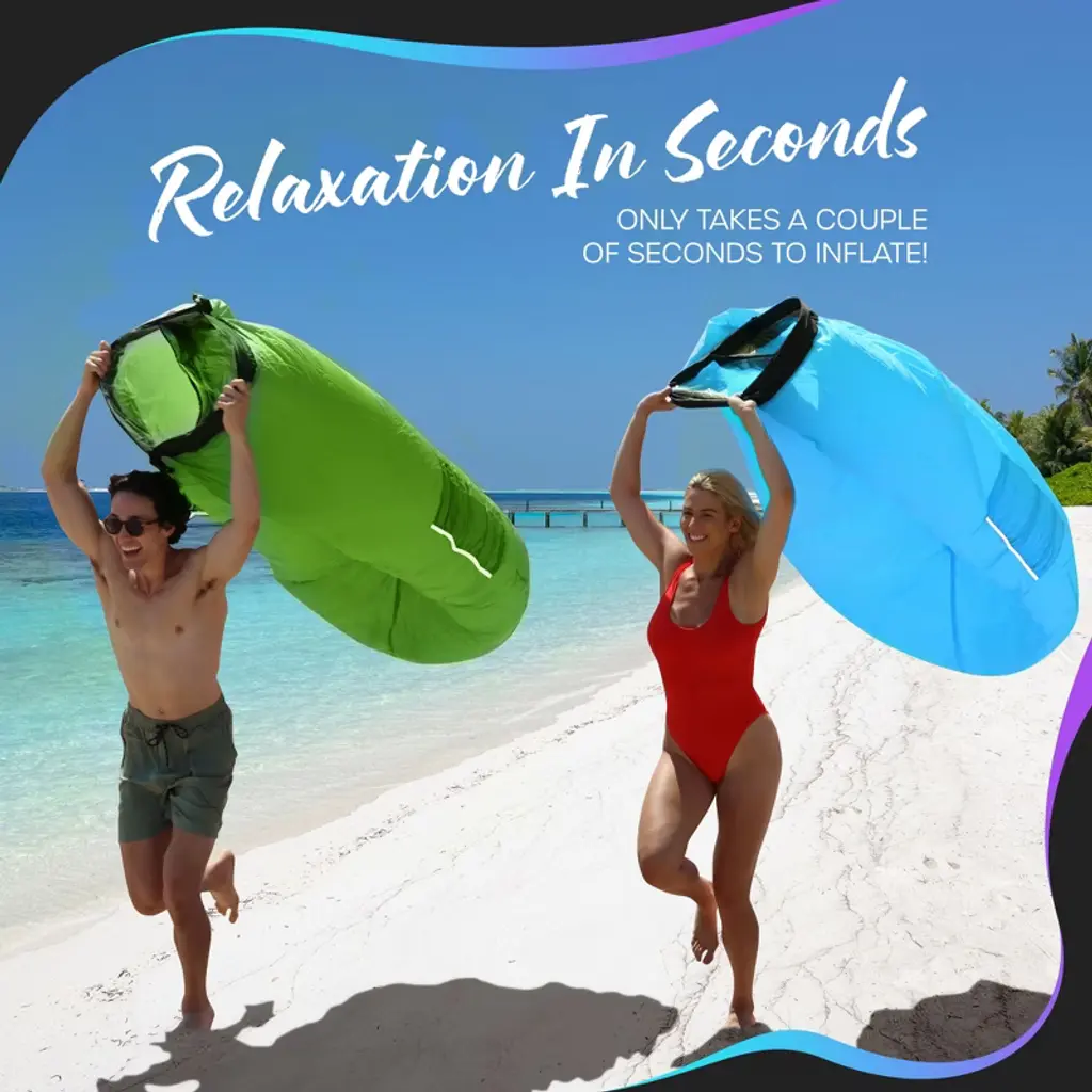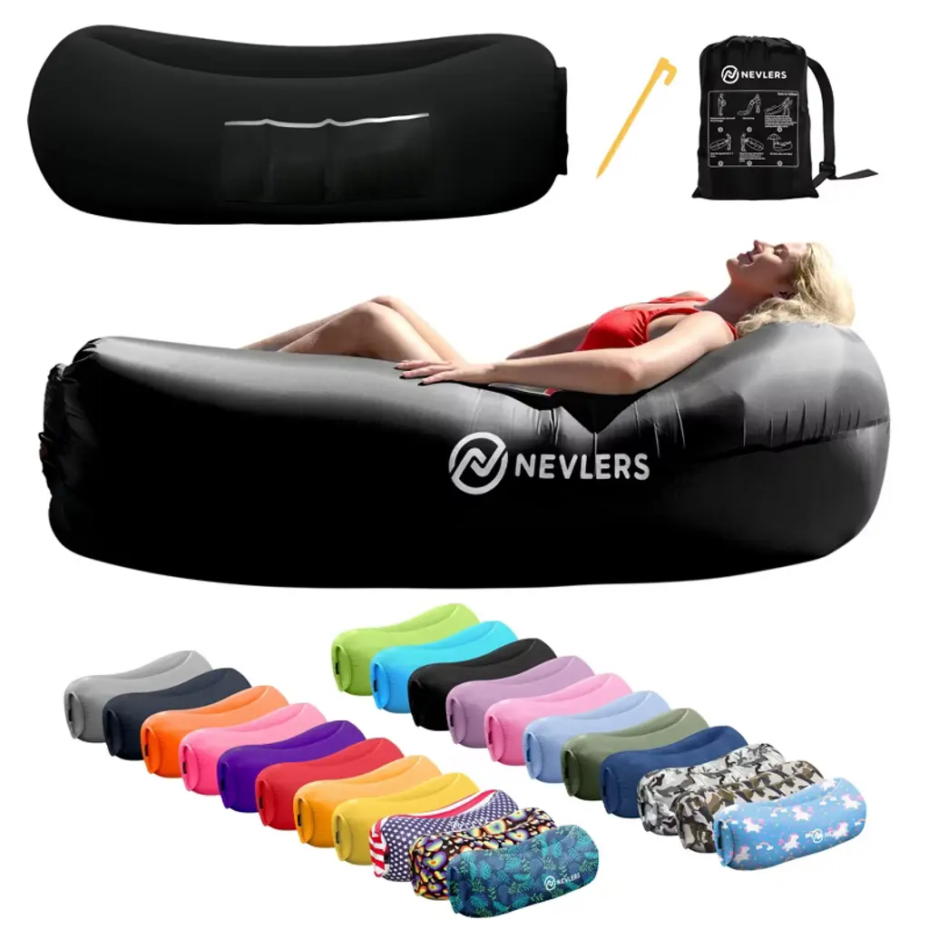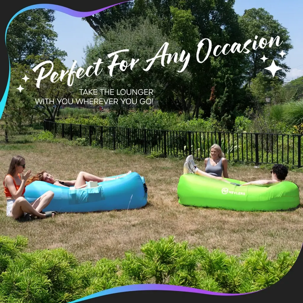 Sit back and relax anywhere in seconds with the Nevlers Inflatable Lounger! Made from lightweight and durable polyester fabric, our inflatable air chair doesn’t require a pump to inflate, making it the ideal seating option for outdoor activities. Whether you’re spending a day at the beach or relaxing poolside, this waterproof inflatable lounge chair will make everything more comfortable and convenient, with 3 pockets to keep your belongings within reach. Plus, with the travel bag and anchoring peg, it’s also perfect for outdoor concerts, camping, sporting events, cookouts, and so much more. Take a seat in style with a variety of fun colors and pick one up today!