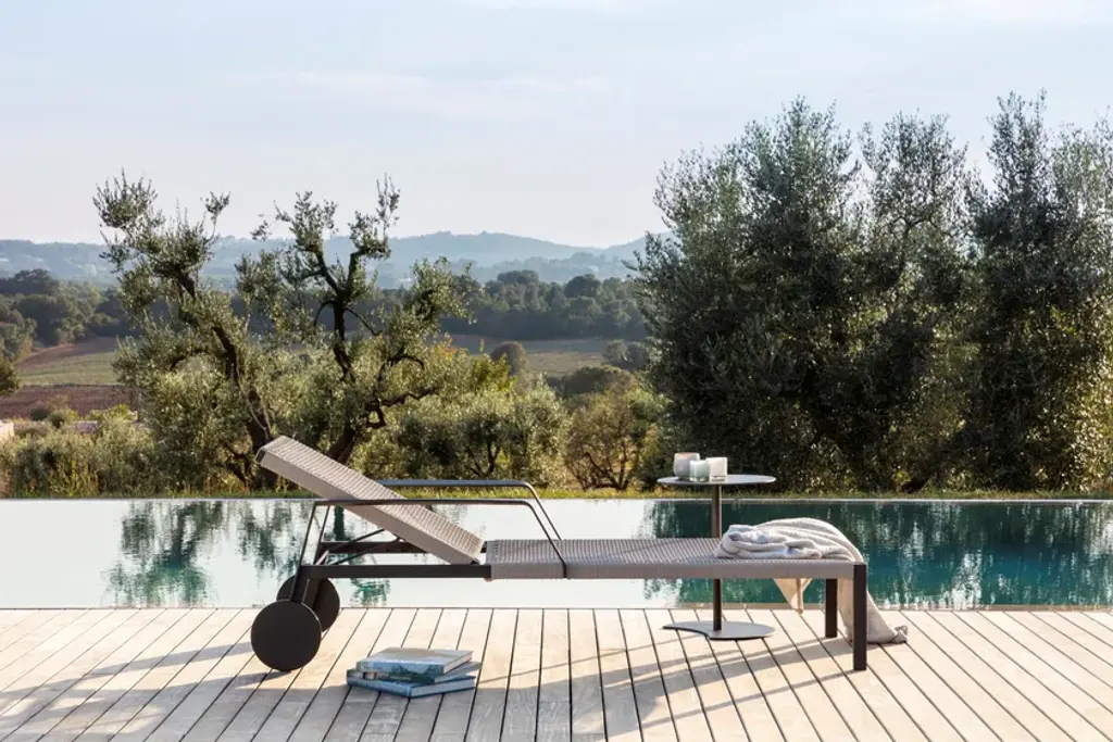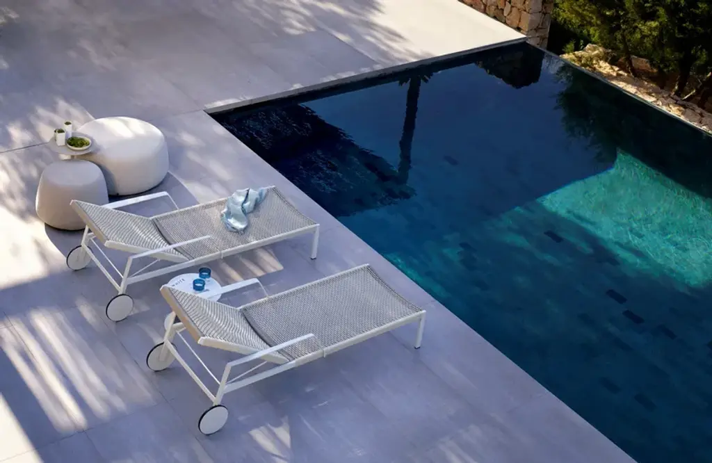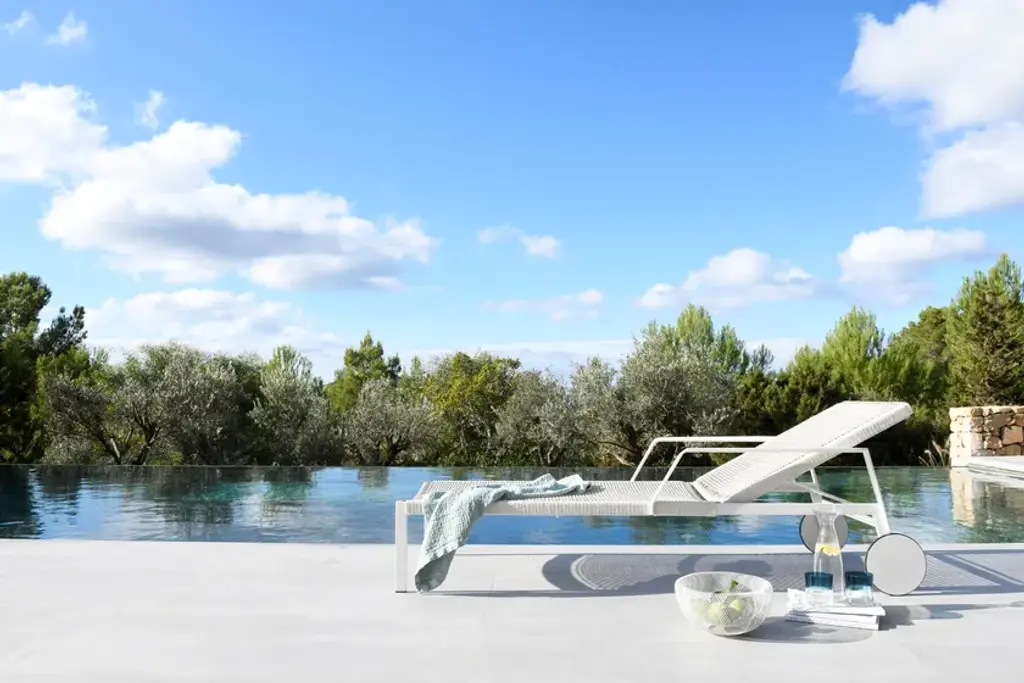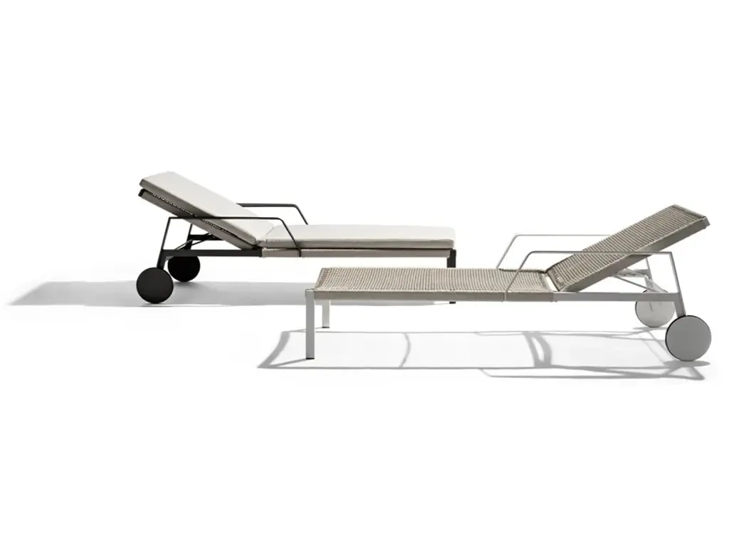 Light and airy, the silhouette of the Nodi lounger is defined by the twisted, interlaced rope in weather-resistant Canax® that is stretched across its slender frame. An innovative mixture of PVC for weather resistance and natural hemp for softness, Canax® is a gently forgiving fabric for perfect comfort. White frames come with linen or off-white weave, wengé frames come with linen. Pared back and refined, the Nodi lounger combines minimalism with a casual lightness of touch.https://www.tribu.com/en/collections/nodi/lounger/