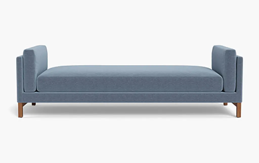 Perfect for a bedroom or living room, the Olivia daybed invites you to unwind with a good book or cozy up for an intimate conversation. Gracious details include classic track arms, plush bolster pillows, and low wood legs, elevating the chic silhouette. Incredibly soft and extraordinarily comfortable, the cloud-like cushion features a foam core surrounded by a blend of fiber, down, and feather fill. Choose from a variety of upholstery options, including linen, velvet, and performance fabrics.