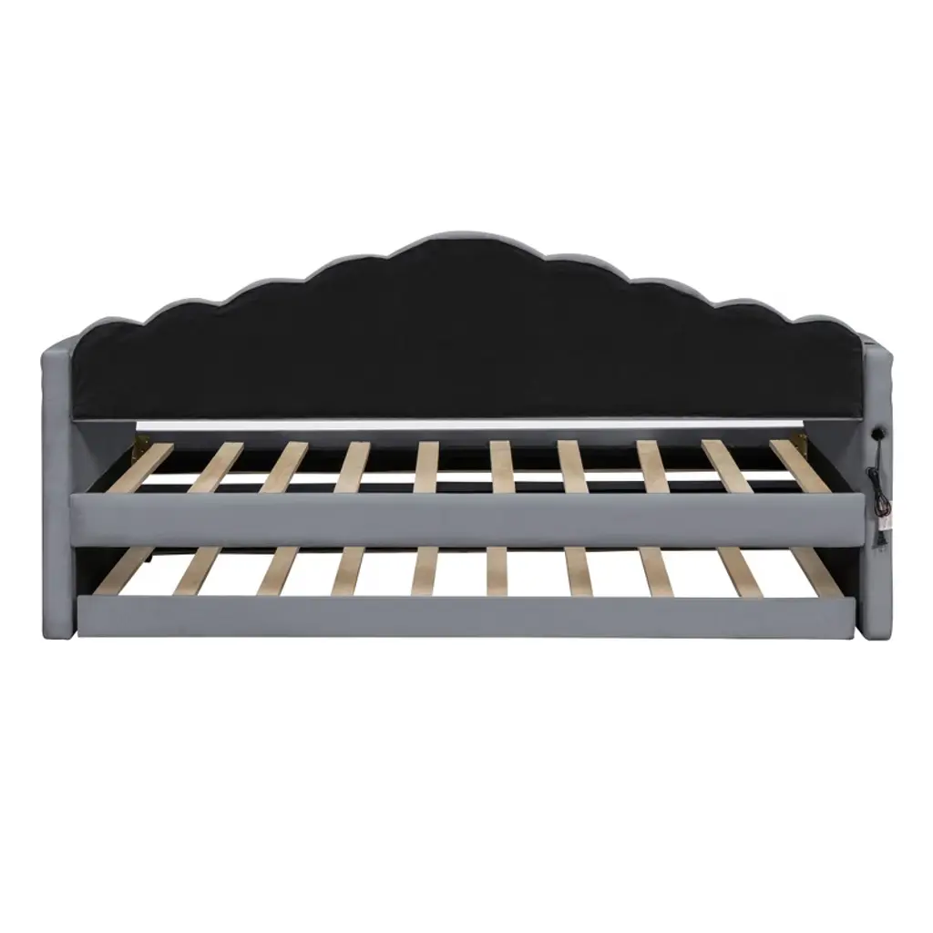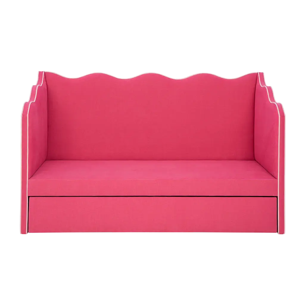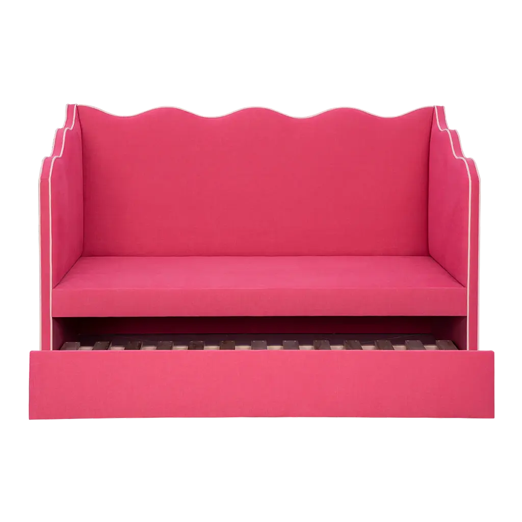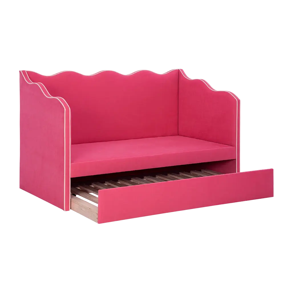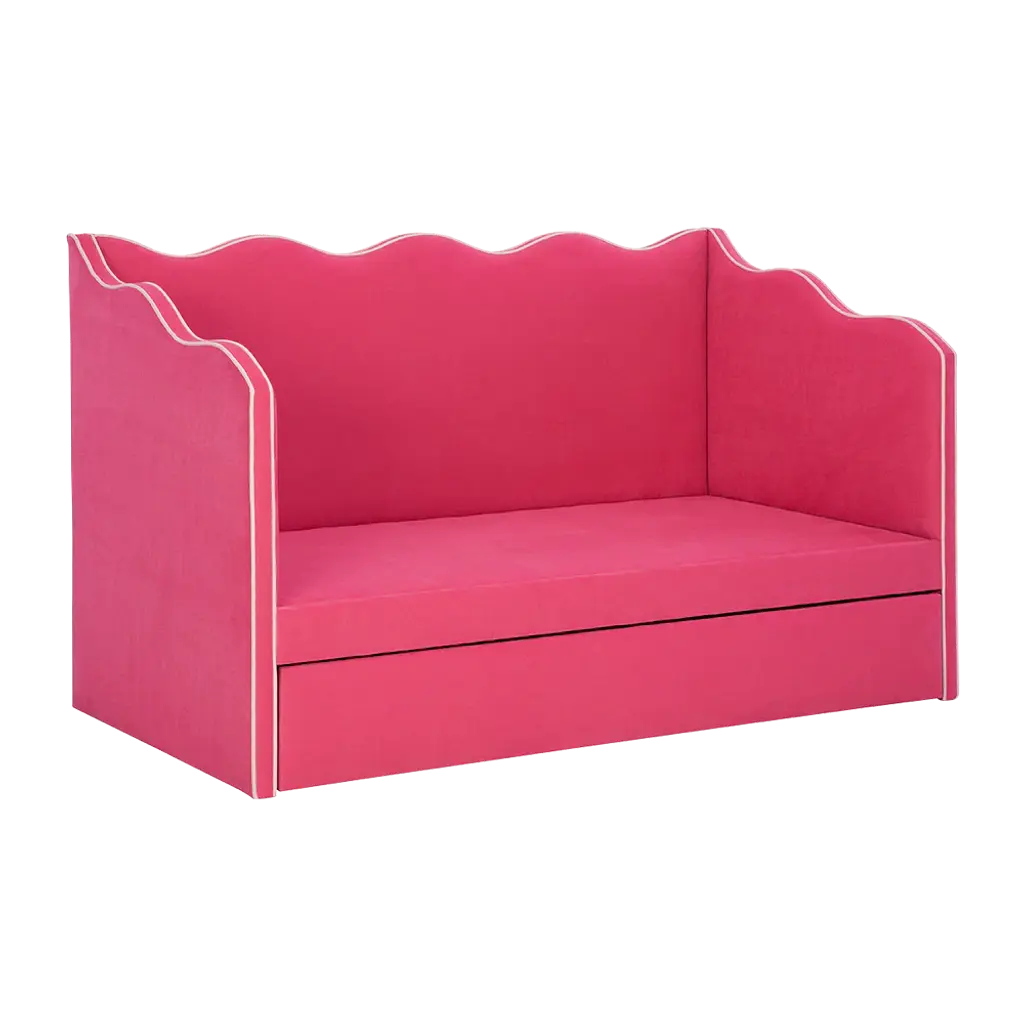 Dimensions: 81 1/4W x 43 1/2D x 50 1/4H COM: 16 yards, 3 yards Fabric Welt, 17 yards Cord The long awaited oomph Daybed is here! Fashioned after our universally popular "Wave" Bed and Headboard, the oomph Daybed is the perfect piece for sleep, lounging, and houseguest overflow. When not used as a bed, it's the idea place to snuggle up with too many pillows and fluffy pet (preferably). The oomph Daybed is Twin size only and fits a standard twin mattress. The trundle gently pulls out and can accept a low profile 5" Mattress. We show this with a custom cover for the twin mattress which can be ordered separately by reaching out to us at sales@oomphhome.com. ** Please Note, if using COM, production will not start until we receive your COM FORM Made in America