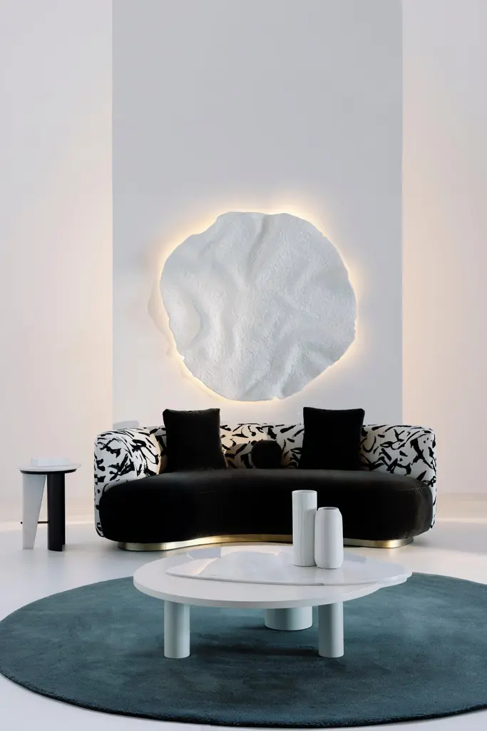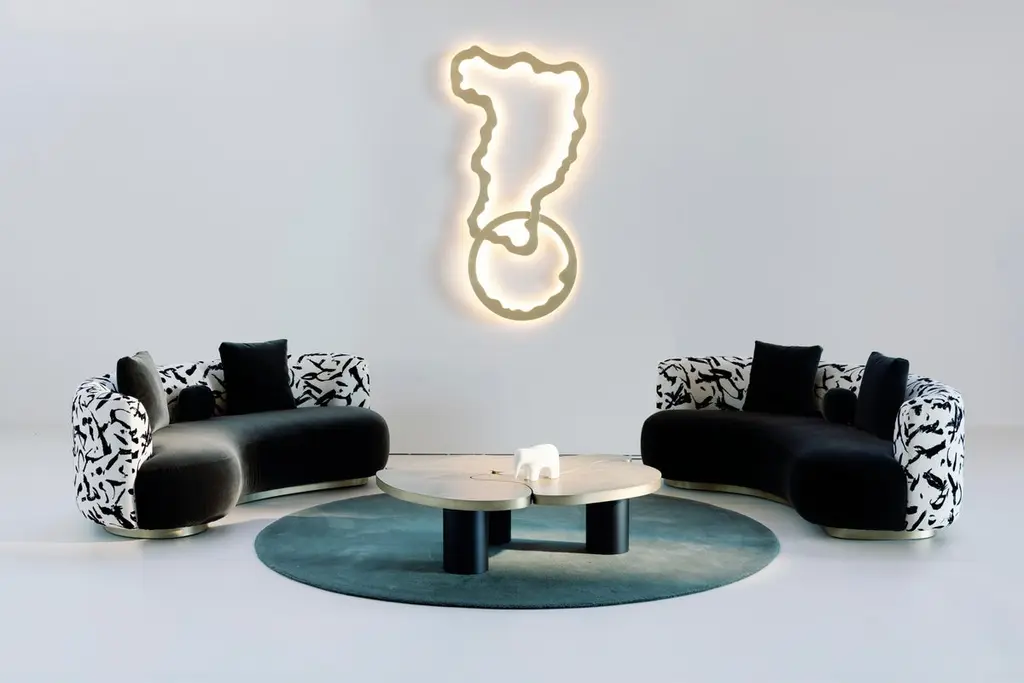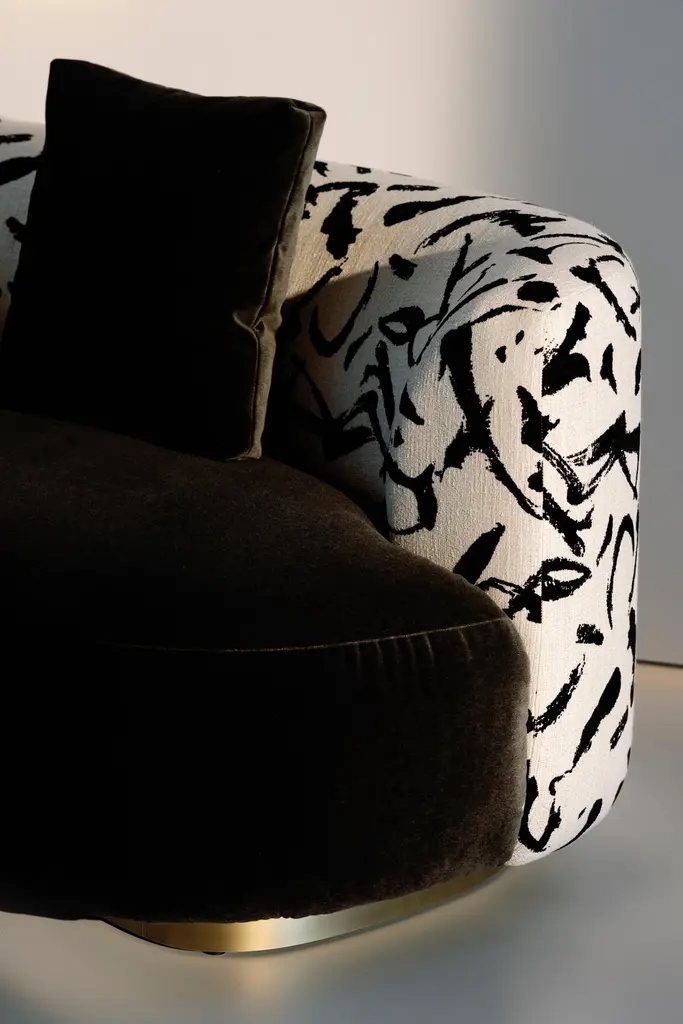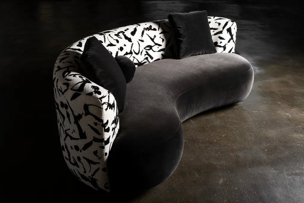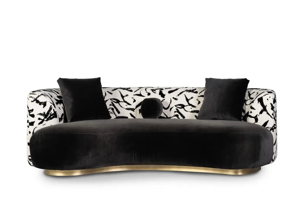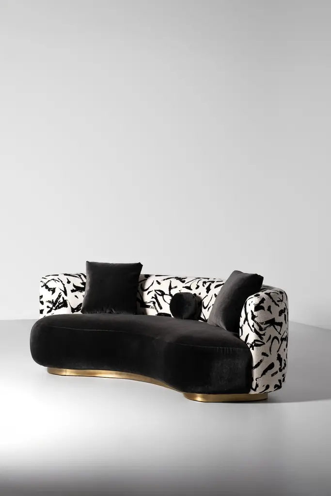 Organic Modern Twins sofa, Contemporary Collection, Handcrafted in Portugal - Europe by Greenapple.The Twins curved sofa and its matching daybed share the same genes, yet each maintains a distinct identity, forming a pair defined by perfect asymmetry. With sculptural curves and sumptuous upholstery, the Twins curved sofa embodies both contemporary elegance and refined artistry, creating a lounging experience of unparalleled comfort. A favorite among designers, it stands as the ideal centerpiece for today’s most sophisticated interiors.The Twins sofa is upholstered in DEDAR beige velvet with black details in the backrest and DEDAR black mohair velvet in the seat.. The fabric can be treated with a stain-resistant finish for added durability.The sofa base is in antique brass with matte finish.Its structure is made from anti-fungal and vermin-free solid steamed beechwood and birch plywood, ensuring exceptional strength and stability. Designed to withstand humid environments, it is also suitable for outdoor use when customized with weather-resistant fabric.The Twins sofa can be customized in terms of dimensions, materials and finishes.Twins Material CodesME032 Brass, Brushed, Burnished, Varnished, Antique-Brass, MatteDEDAR velvet Ichi-go Ichi-e ; col. 2DEDAR Mohair Velvet, BlackHandcrafted in Portugal - Europe by GreenappleUnique by design, Crafted by peopleGreenapple transforms contemporary spaces into exclusive narratives of design and craftsmanship. From custom-made furniture to bespoke interiors, each creation is a timeless work of art, shaped by master artisans who honor centuries-old techniques.Founded in 2005 by Sérgio Rebola and Rute Martins, Greenapple has earned global recognition among high-end clientele and leading design firms. While Rute designs each unique piece, Sérgio ensures uncompromising quality from design to production and from production to your home. We provide a seamless experience, offering short production lead times, worldwide delivery within 7 to 10 days, and white-glove service upon request.For U.S. clients, we can handle customs clearance, and offer white-glove service as well upon request.Couch, Sette