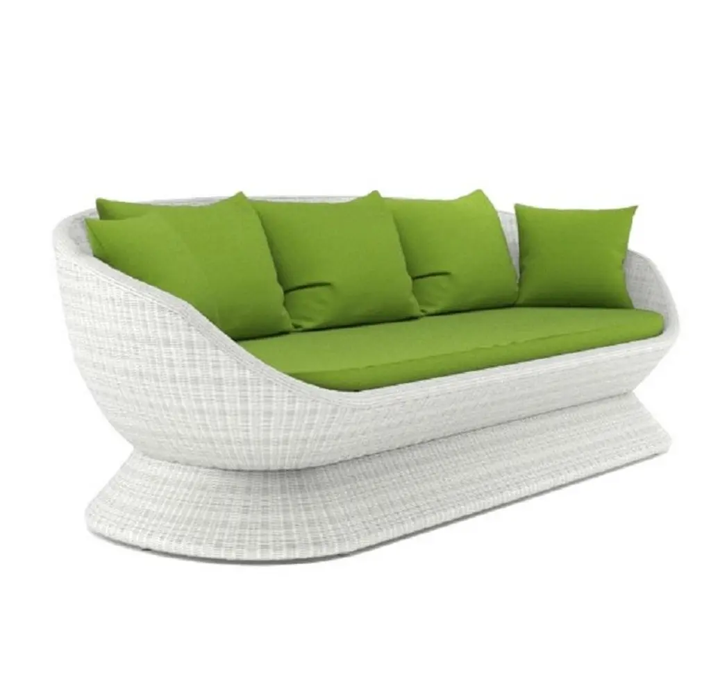 Outdoor 3-Seater Sofa With Seashell White Wicker Structure