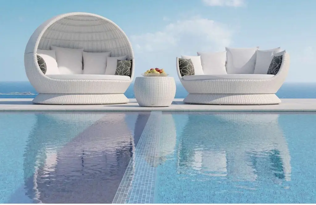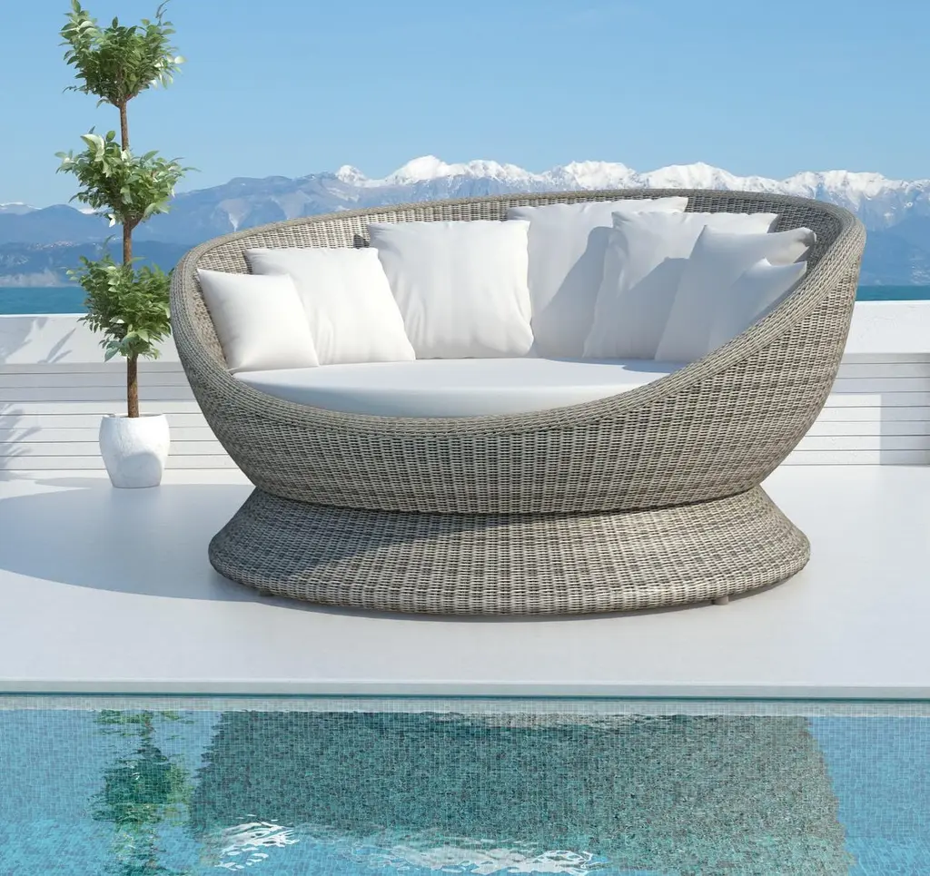 The collection includes a swivel daybed, high back swivel armchair, a sofa, and tables. Contract grade collection designed for long-term use and handcrafted by master-weavers with highest quality materials that are recyclable, weather resistant to rain, frost, snow and are 100% UV-resistant.We do our best to expedite production and to ship and deliver product within the listed lead time, however current lead times might be longer due to global shipping backlog and delays. These delays are out of our control and cannot be a reason to cancel an order.
